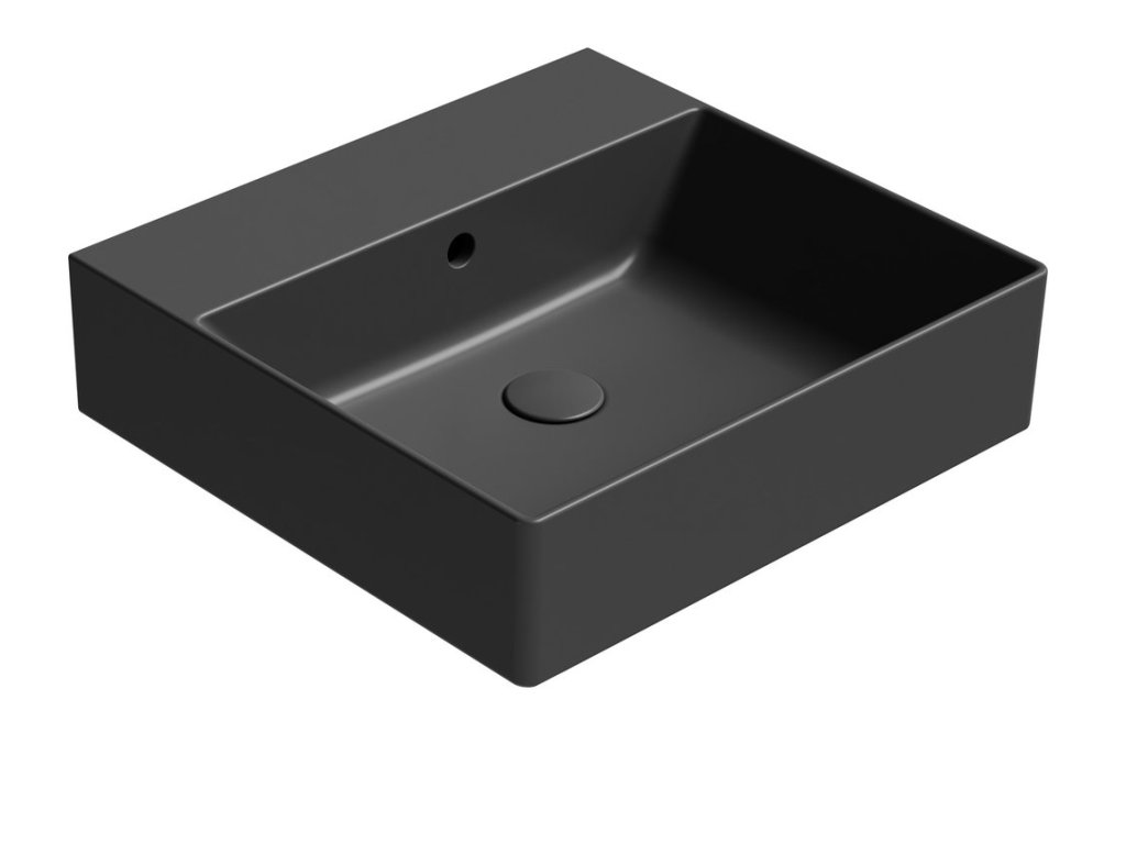 KUBE X keramické umyvadlo 50x47cm, broušená spodní hrana, bez otvoru, černá mat