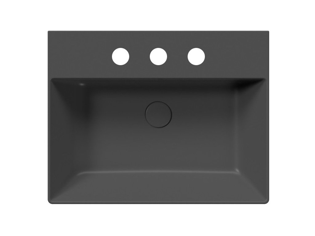 KUBE X keramické umyvadlo 60x47cm, broušená spodní hrana, 3 otvory, černá mat