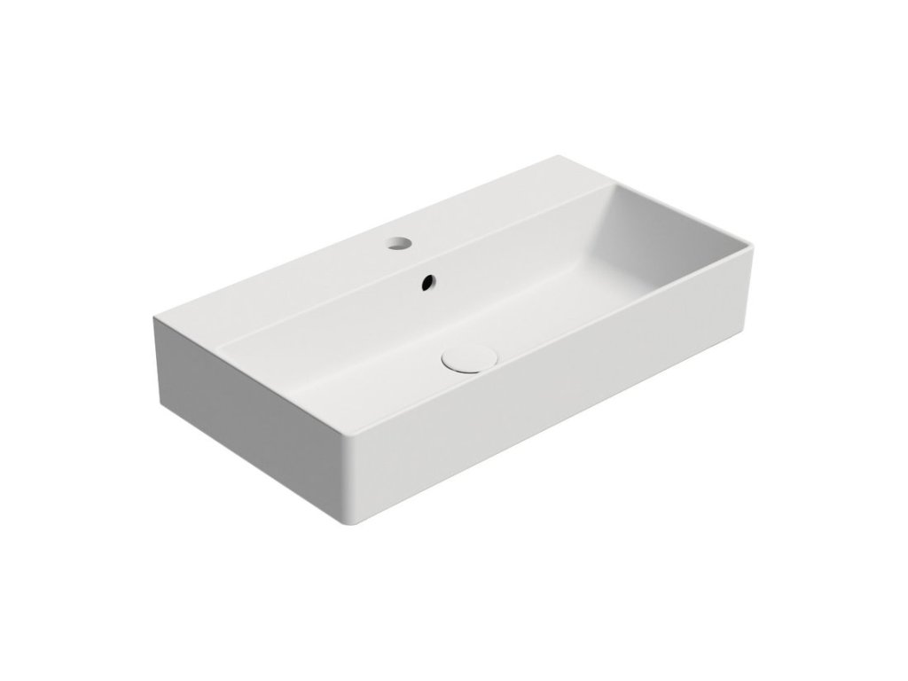 - Hranatá umyvadla s decentně zaoblenými rohy a štíhlou hranou