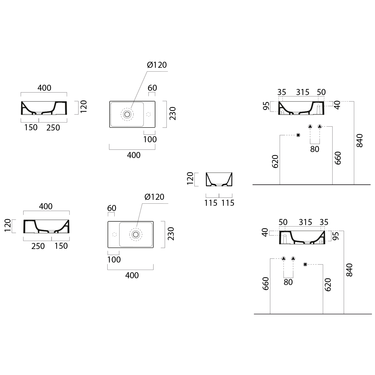 - umyvadla lze dodat i v retifikované verzi (se zabroušenou spodní plochou) pro použití na desku, s příplatkem dle platného ceníku