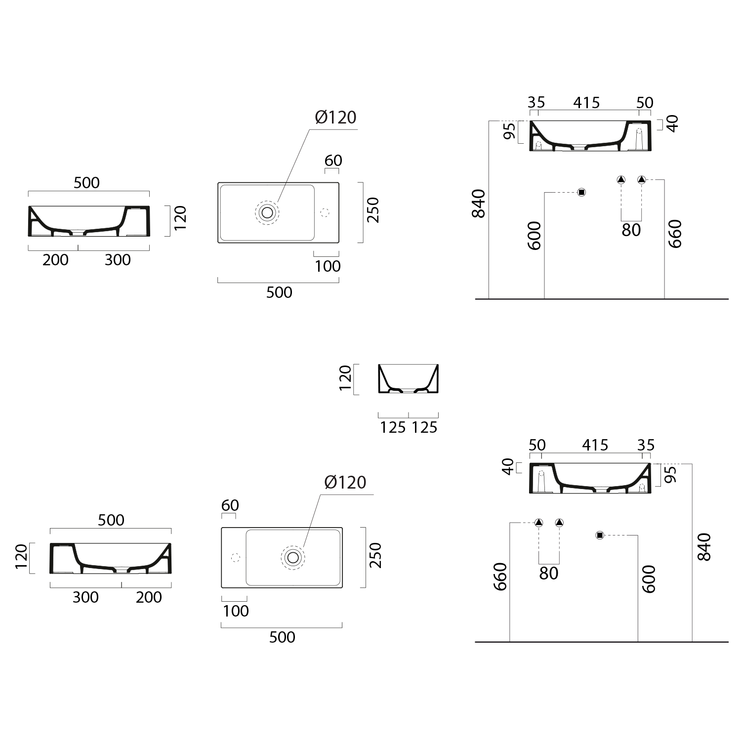 - umyvadla lze dodat i v retifikované verzi (se zabroušenou spodní plochou) pro použití na desku, s příplatkem dle platného ceníku