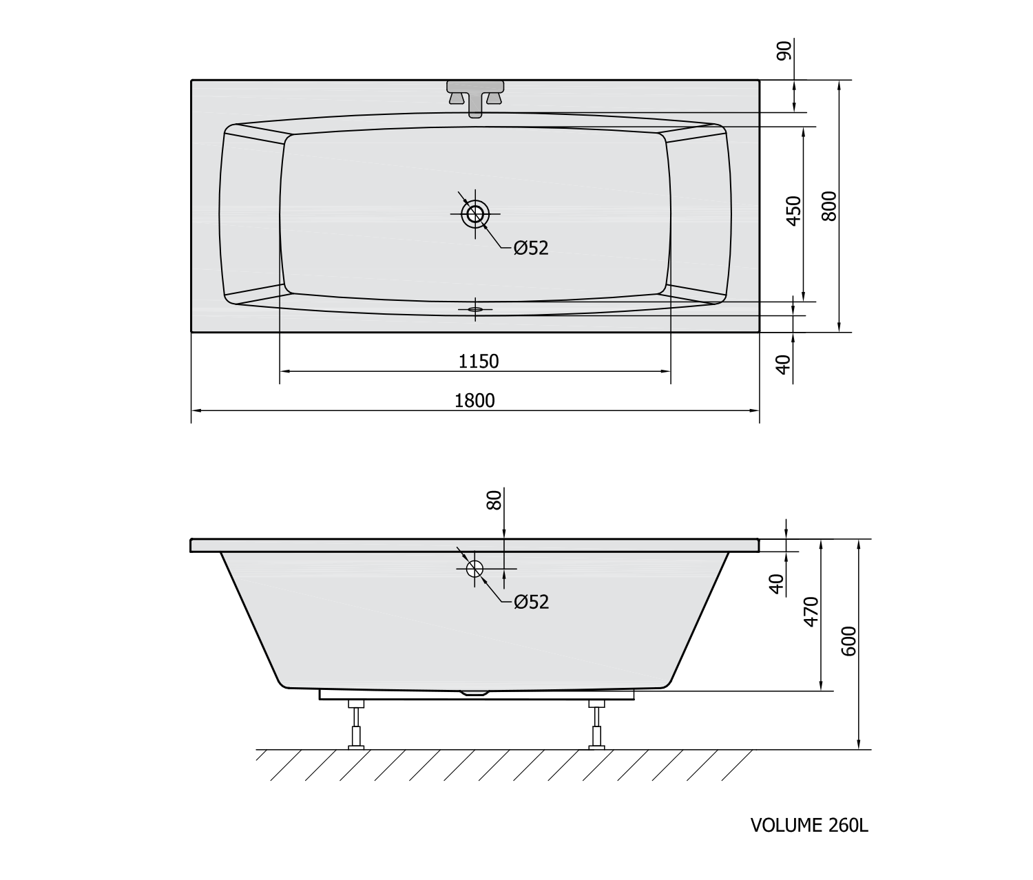 KVADRA obdélníková vana 180x80x47cm, bílá