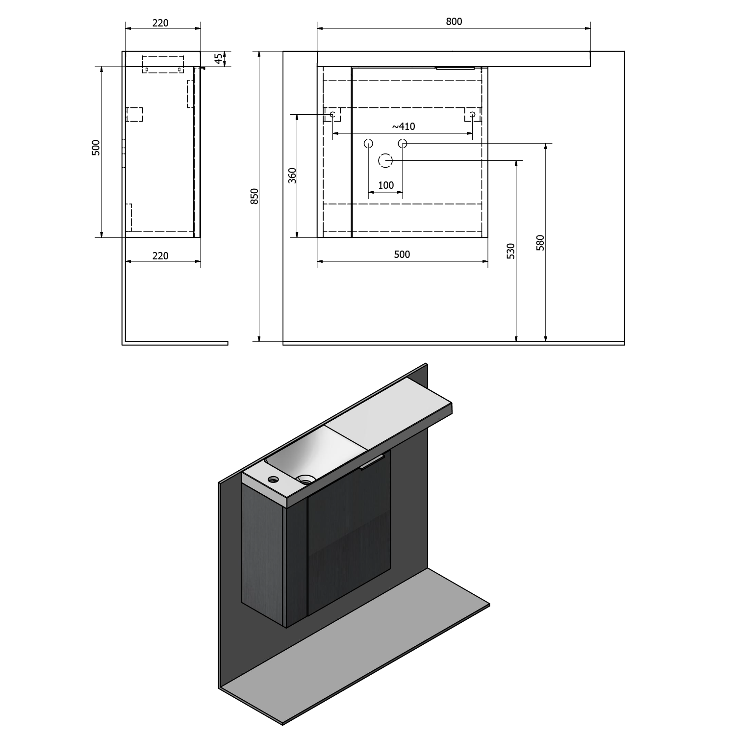 LATUS VI umyvadlová skříňka 50x50x22cm, levá, bílá