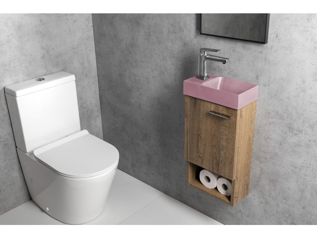 Malé rozměry koupelnového nábytku LATUS umožňují instalaci především do stísněných prostor, obzvláště na toalety. Skříňka se přímo nabízí k uskladnění čistících a hygienických prostředků nebo toaletního papíru. Umyvadlo z litého mramoru nebo keramiky vytváří se skříňkou kompaktní celek. V nabídce je jak několik tvarů umyvadel, tak barevných dekorů skříněk pro větší kompatibilitu.