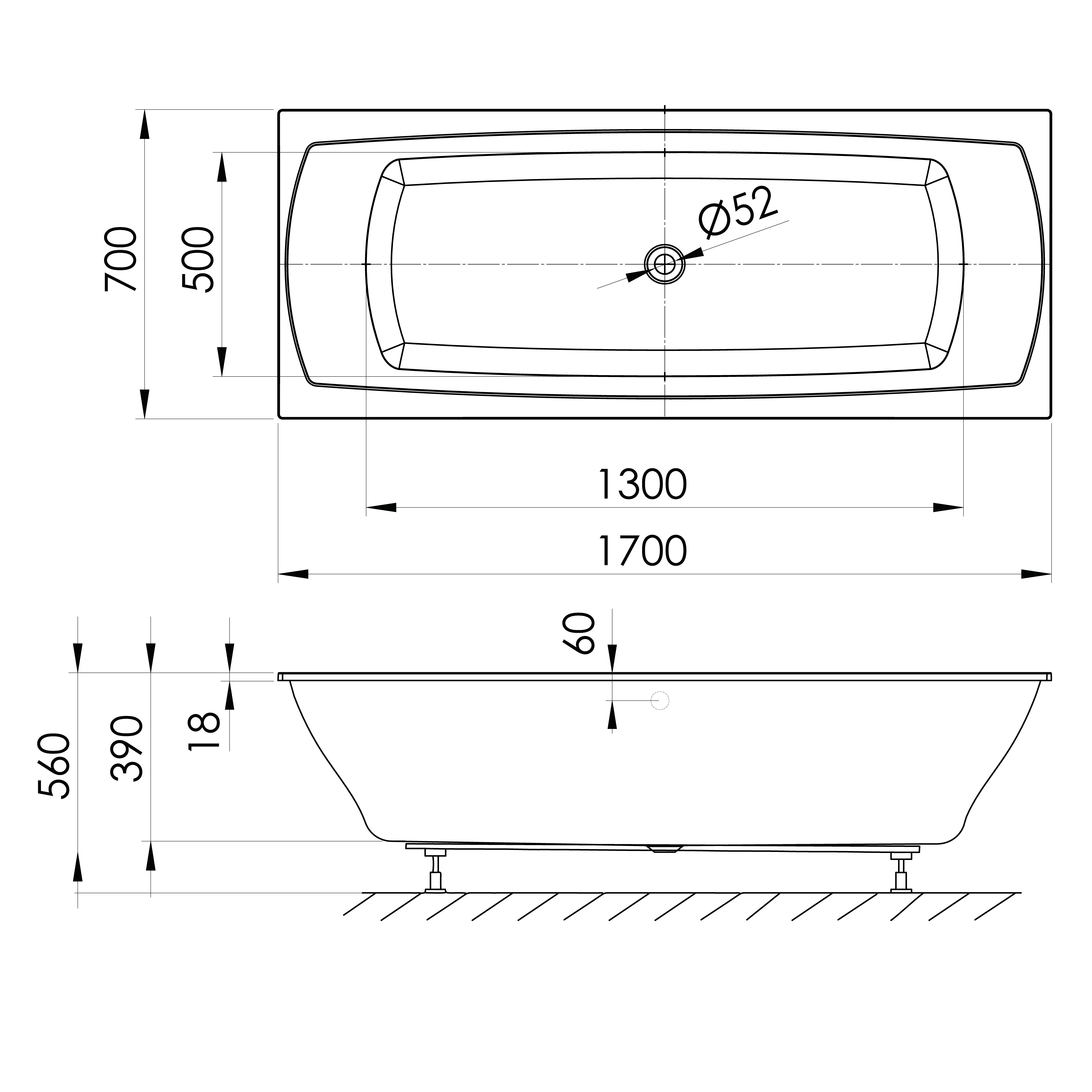 LILY SLIM obdélníková vana 170x70x39cm, bílá