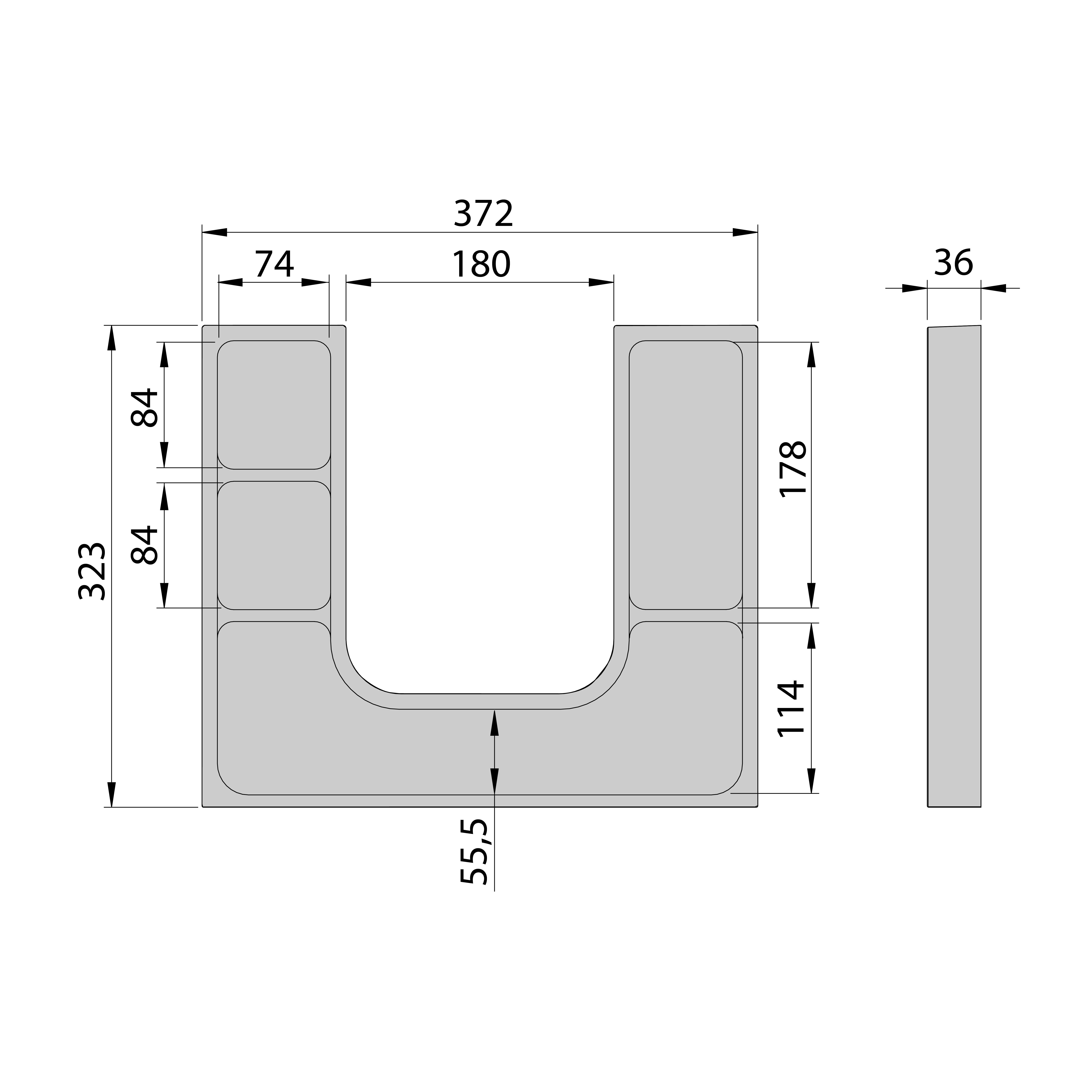 LINDO "U" organizér 372x36x323mm, plast, antracit