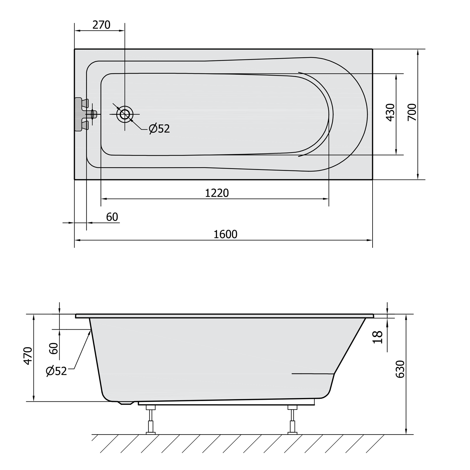 LISA SLIM obdélníková vana 160x70x47cm, bílá