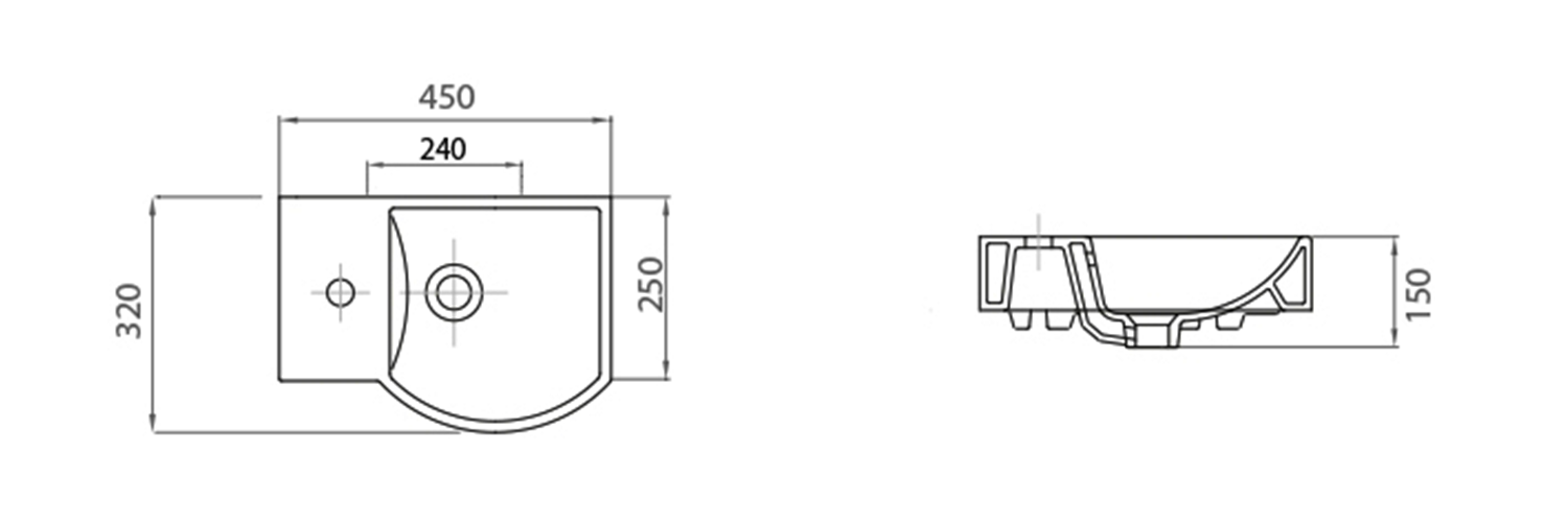 LITOS keramické umývátko rohové, 45x32cm, baterie vlevo, bílá