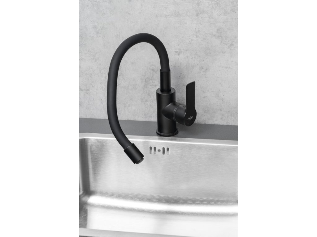 LORE stojánková dřezová baterie, flexibilní ramínko, černá mat