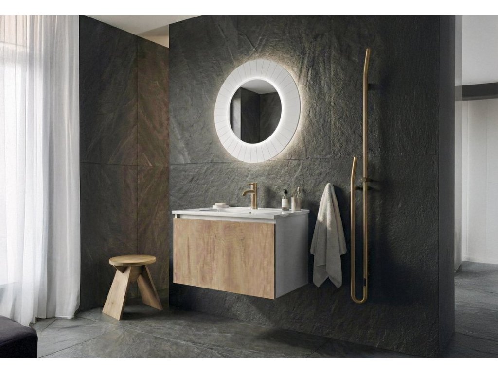 Uvnitř skříňky je nad zásuvkou praktická police na drobnosti každodenní potřeby. Pod hranu umyvadla lze instalovat tlumené LED osvětlení, které pro jeho nízkou spotřebu (1W) není nutné vypínat.