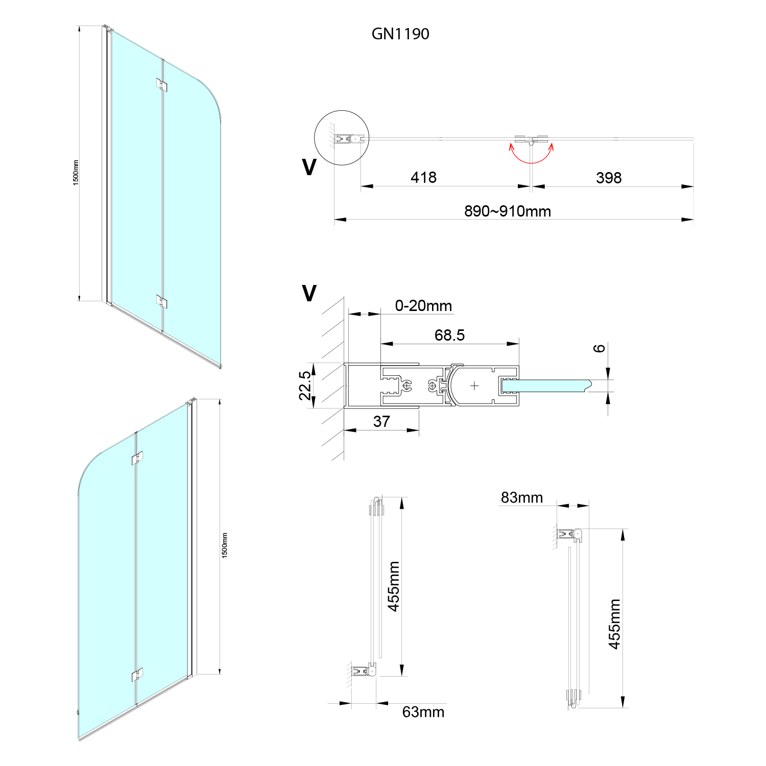 LORO vanová zástěna skládací 900mm, čiré sklo