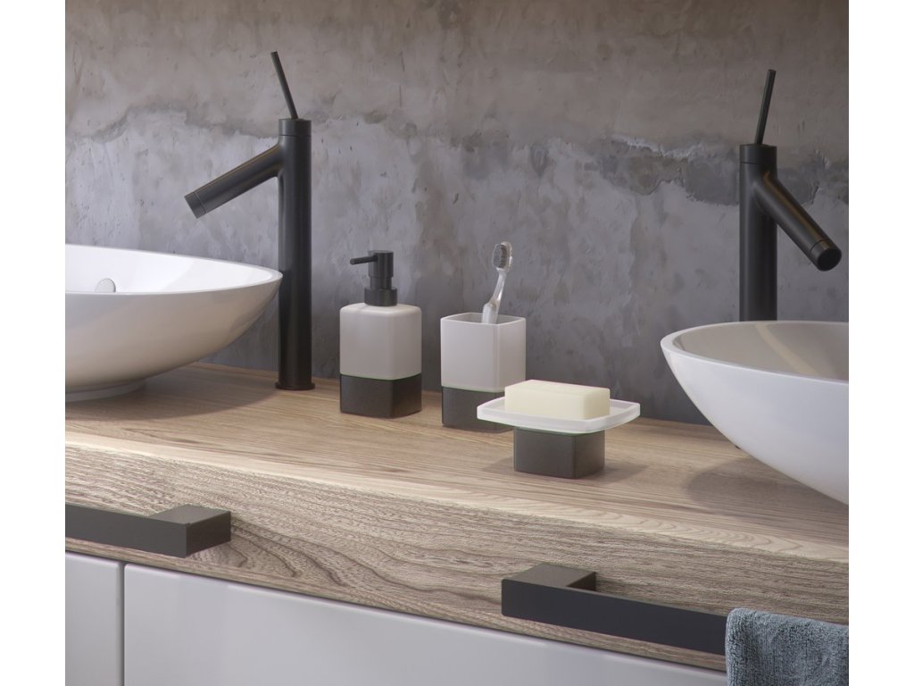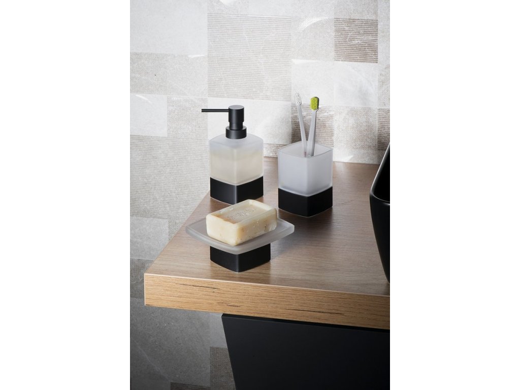 LOUNGE mýdlenka na postavení, mléčné sklo, černá mat