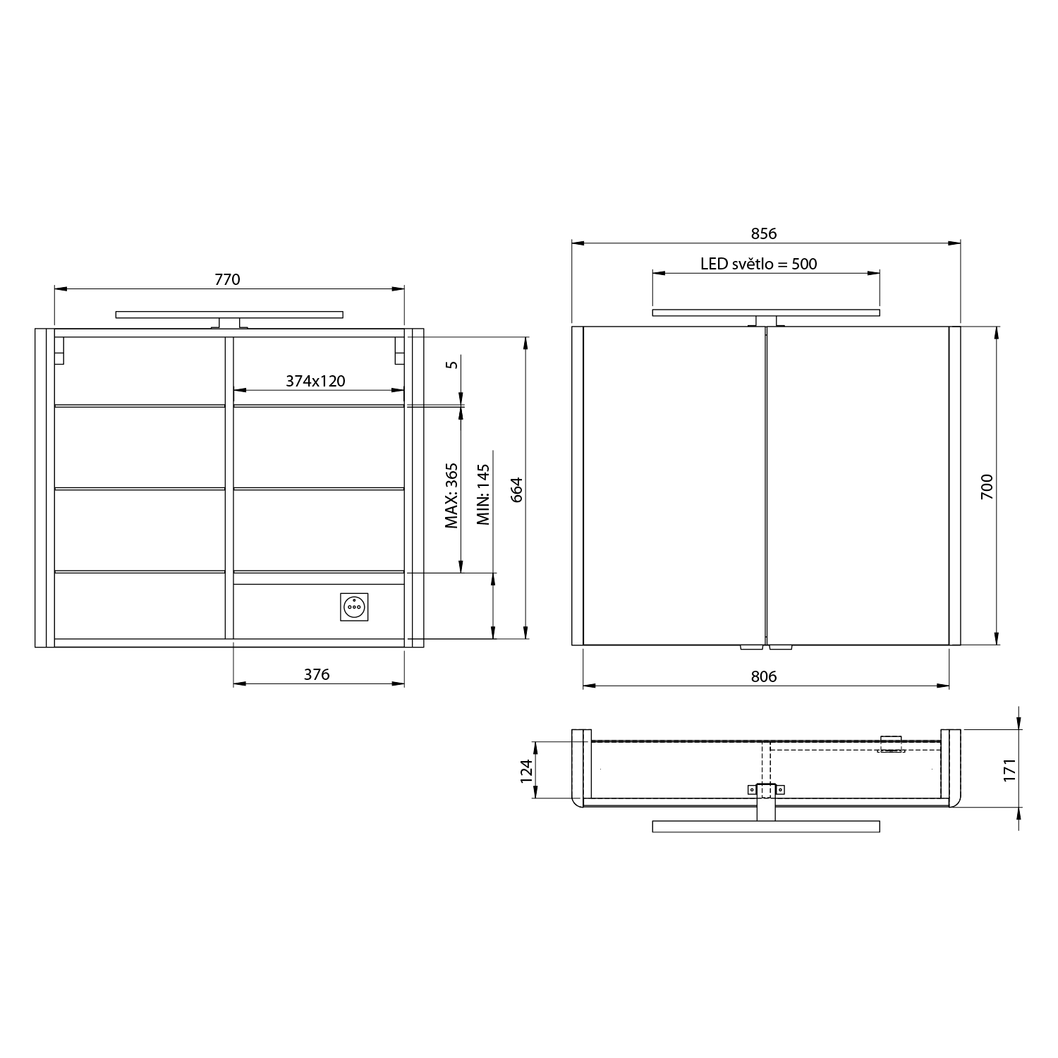 LUCIE galerka s LED osvětlením, 86x70x17cm, bílá
