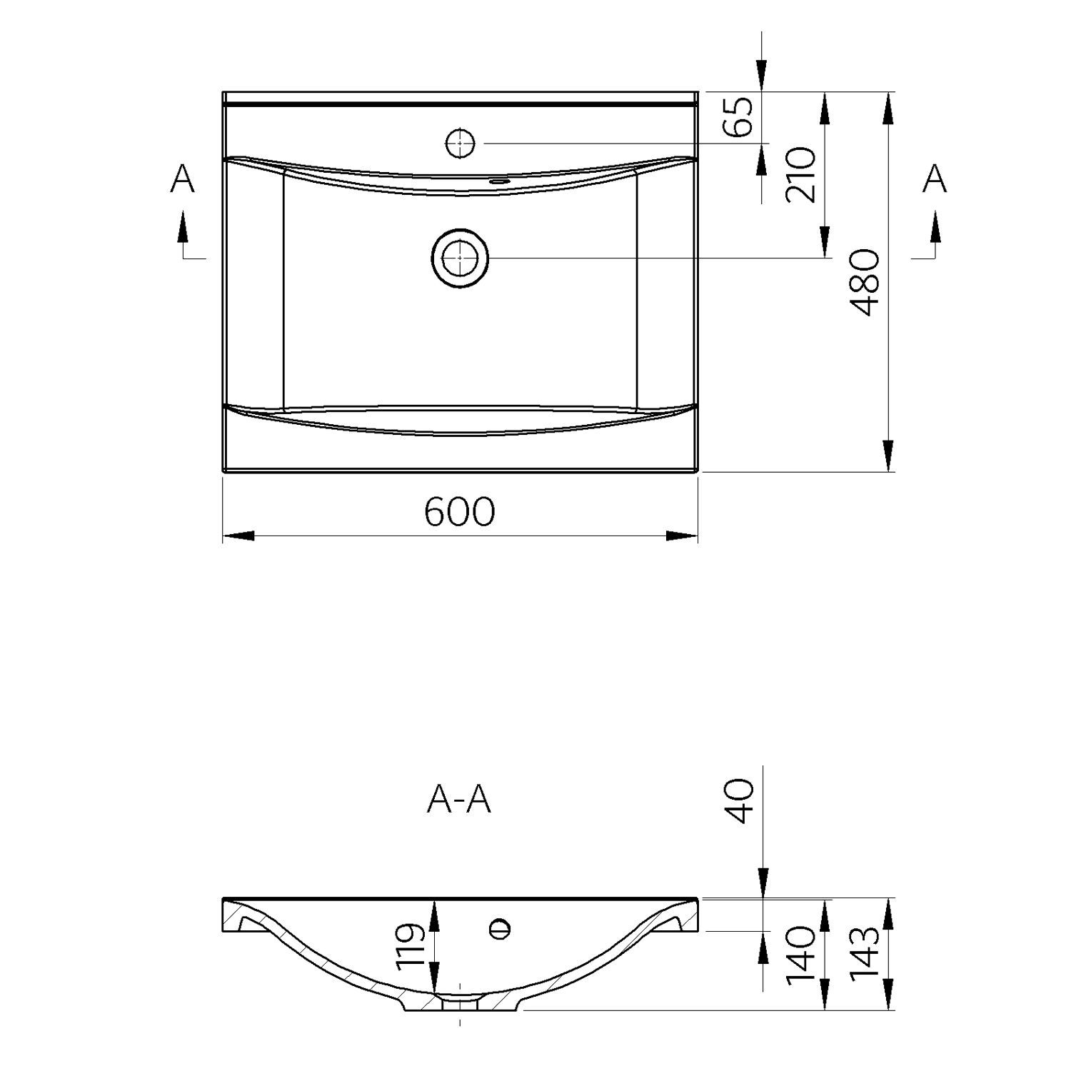 LUCIOLA umyvadlo, litý mramor, 60x48cm, bílá