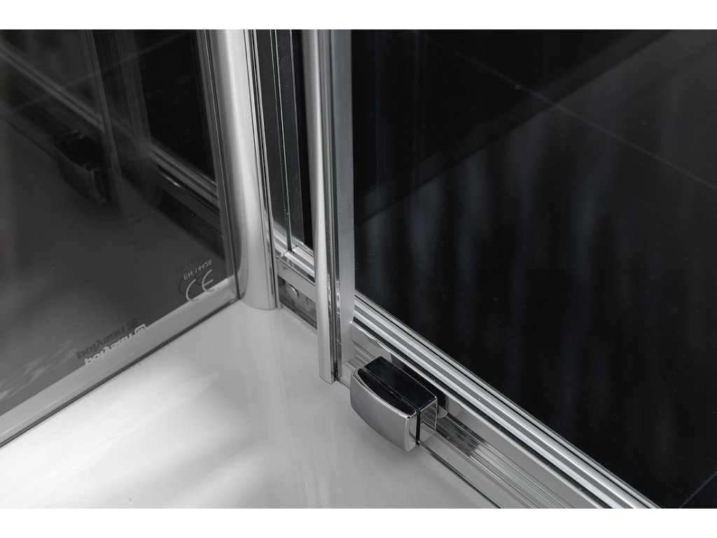 - Pro vyšší tuhost zástěn byly některé díly vyrobeny z 8 mm skla (speciálně bylo potlačeno kmitání 6 mm dveří)