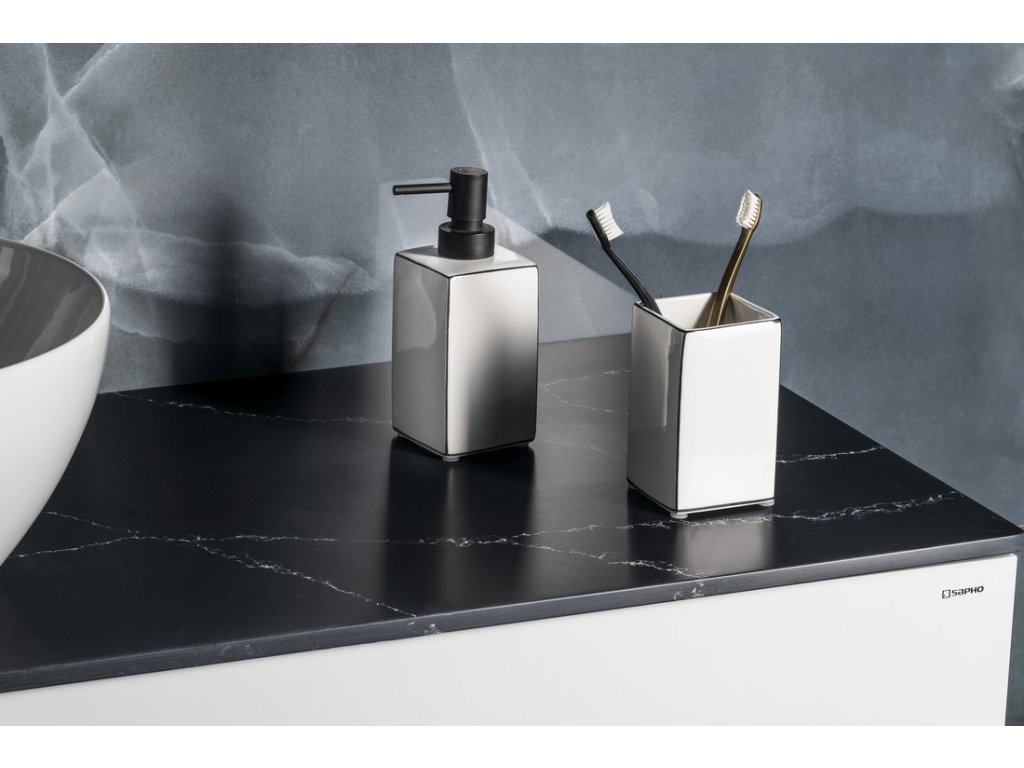 Kolekce LUCREZIA z nadčasového materiálu, jakým keramika bezesporu je, představuje nepostradatelné doplňky do koupelen různých stylů. Svým provedením v matné bílé s černou linkou procházející v hranách se stane ozdobou Vaší koupelny.