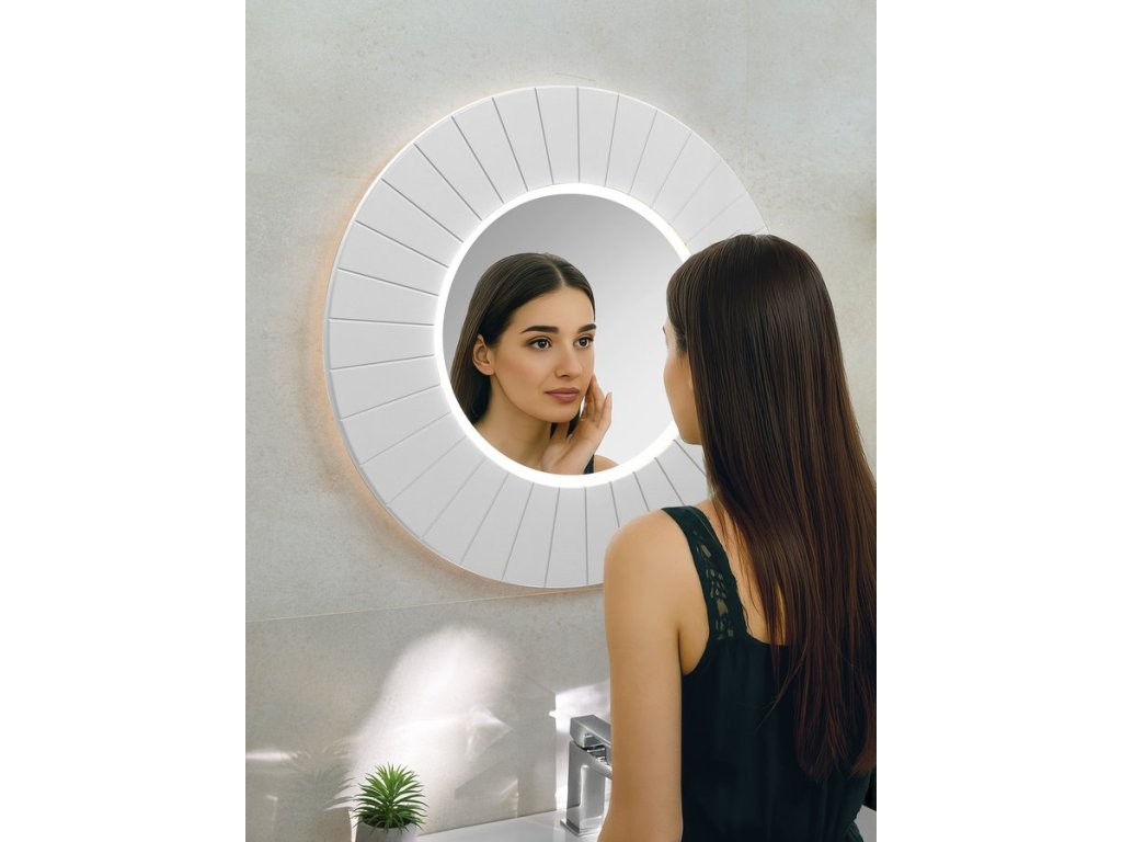 LUMIRO STRIP kulaté zrcadlo s LED osvětlením v rámu ø 75cm, bílá mat