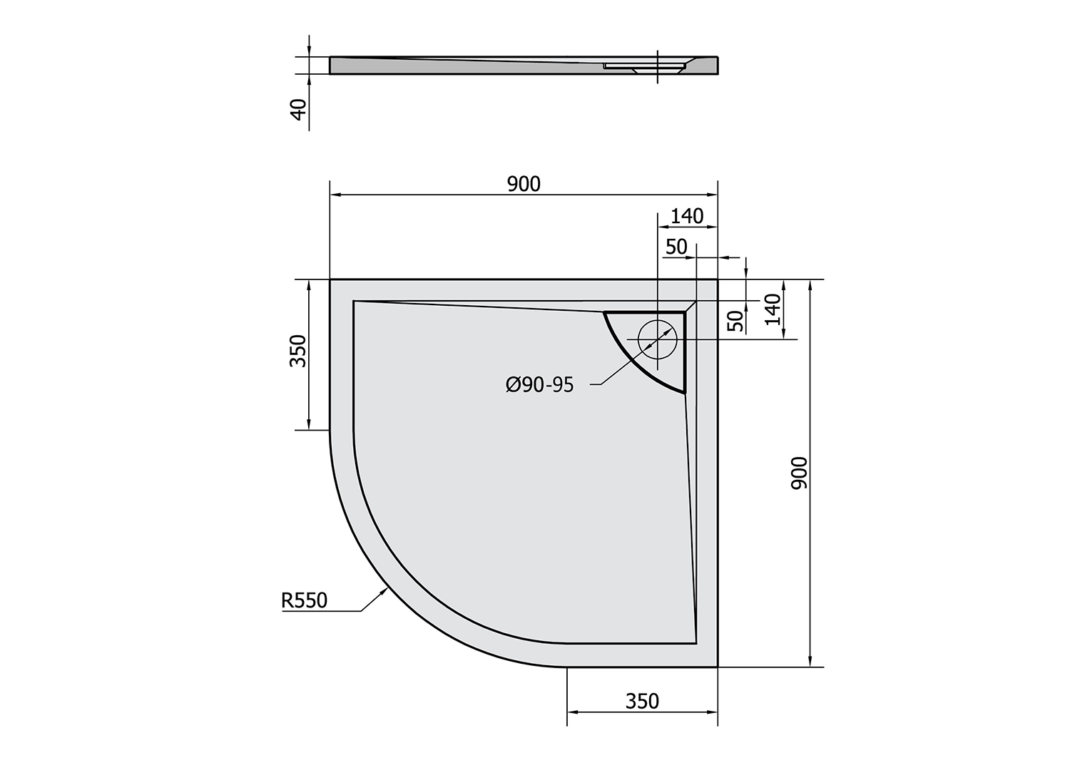 LUSSA sprchová vanička z litého mramoru se záklopem, čtvrtkruh 90x90cm, R550