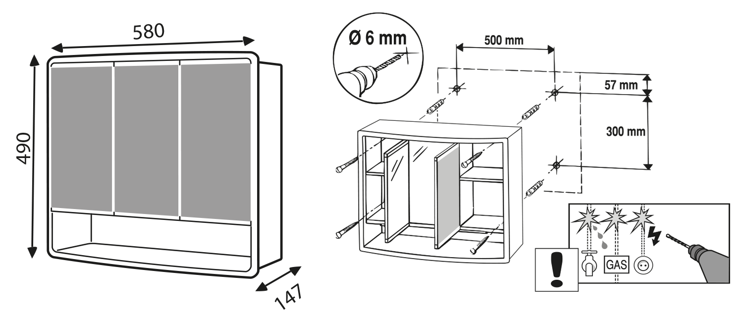 - pod zrcadlovými dvířky otevřený odkládací prostor