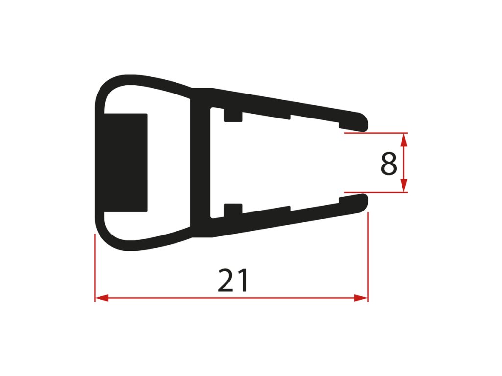 Magnetické těsnění ploché, sklo 8mm, 2000mm, černá