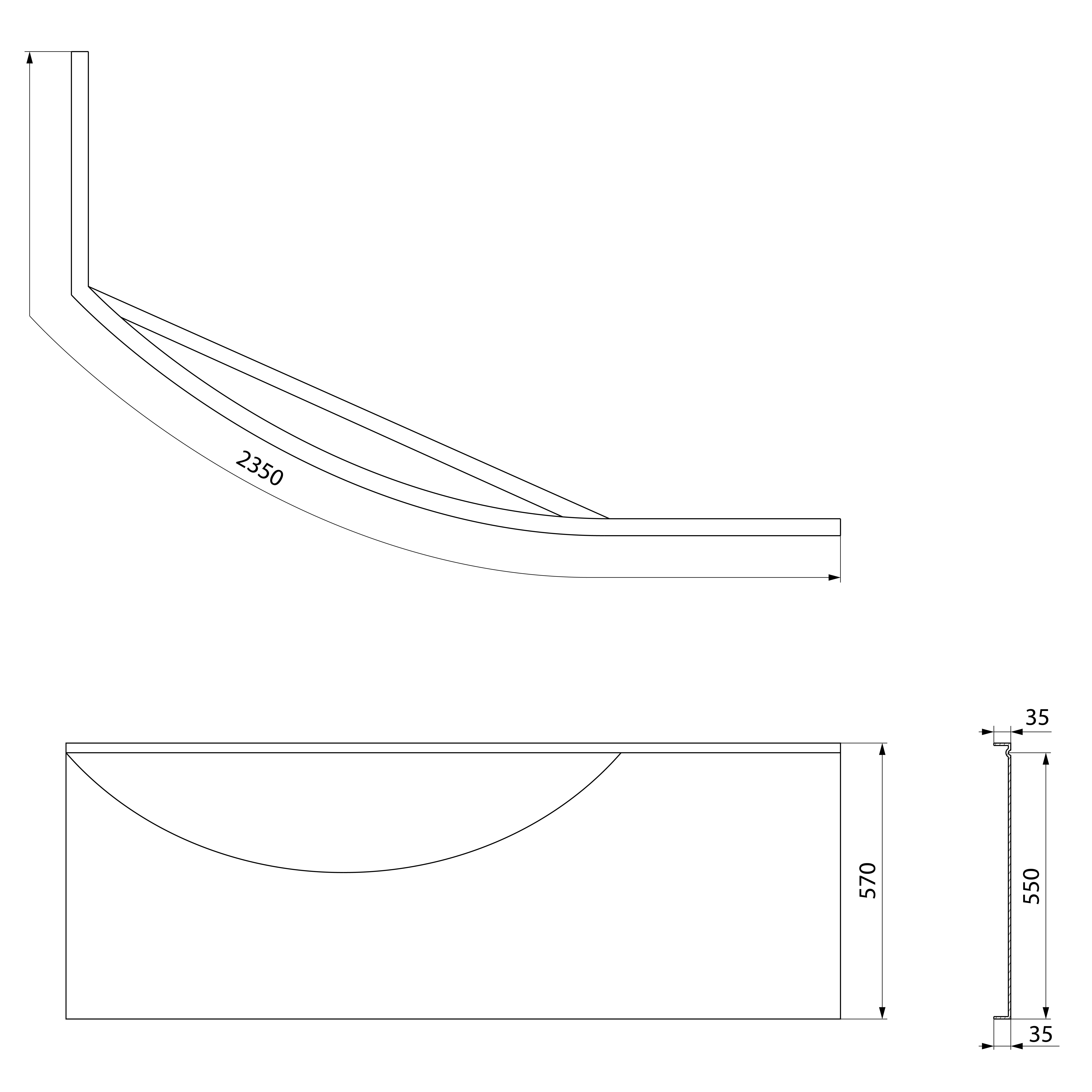 Rohový panel - pravý k vaně Mamba R 170. Zakrývá přední zaoblenou a nejkratší rovnou boční část vany.