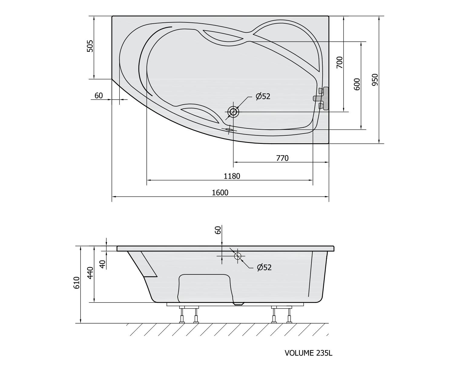 MAMBA R asymetrická vana 160x95x44cm, bílá