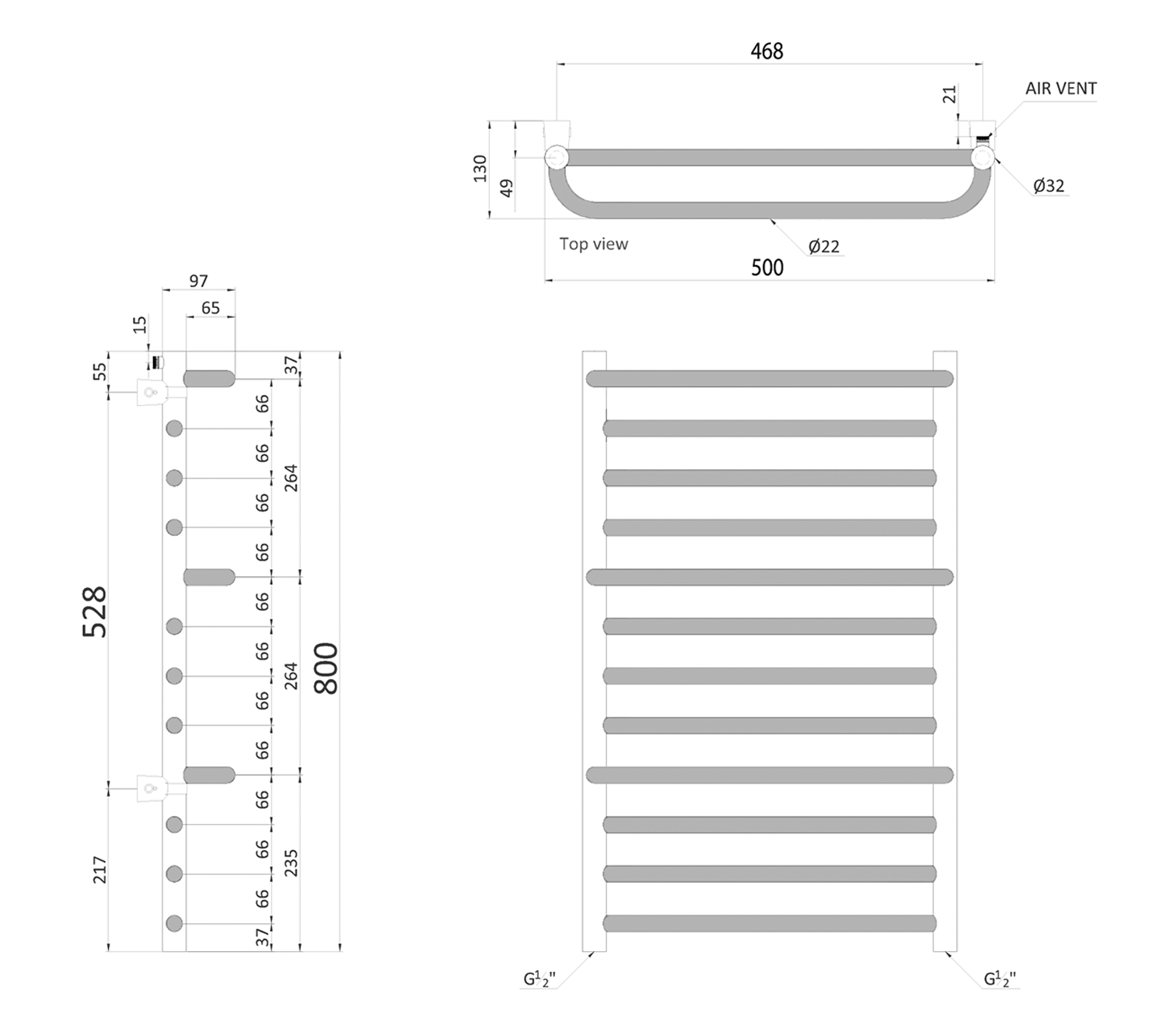 MANISA otopné těleso 500x800mm, se třemi madly pro ručník, chrom