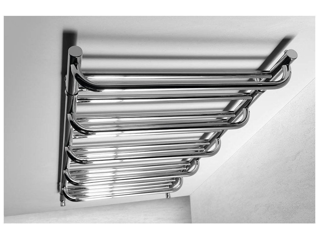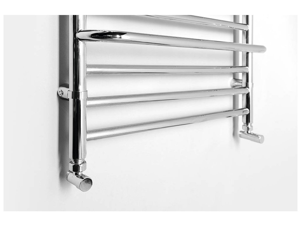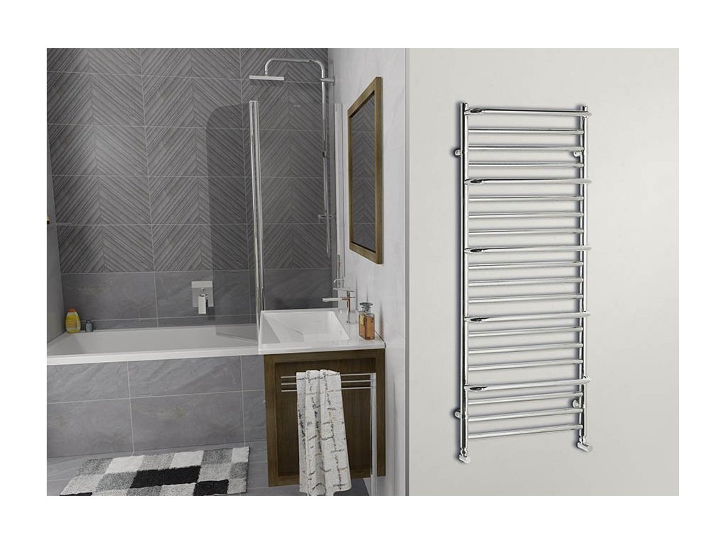 Klasické těleso vyrobené z pochromovaných ocelových trubek, doplněné praktickými madly na sušení ručníků.