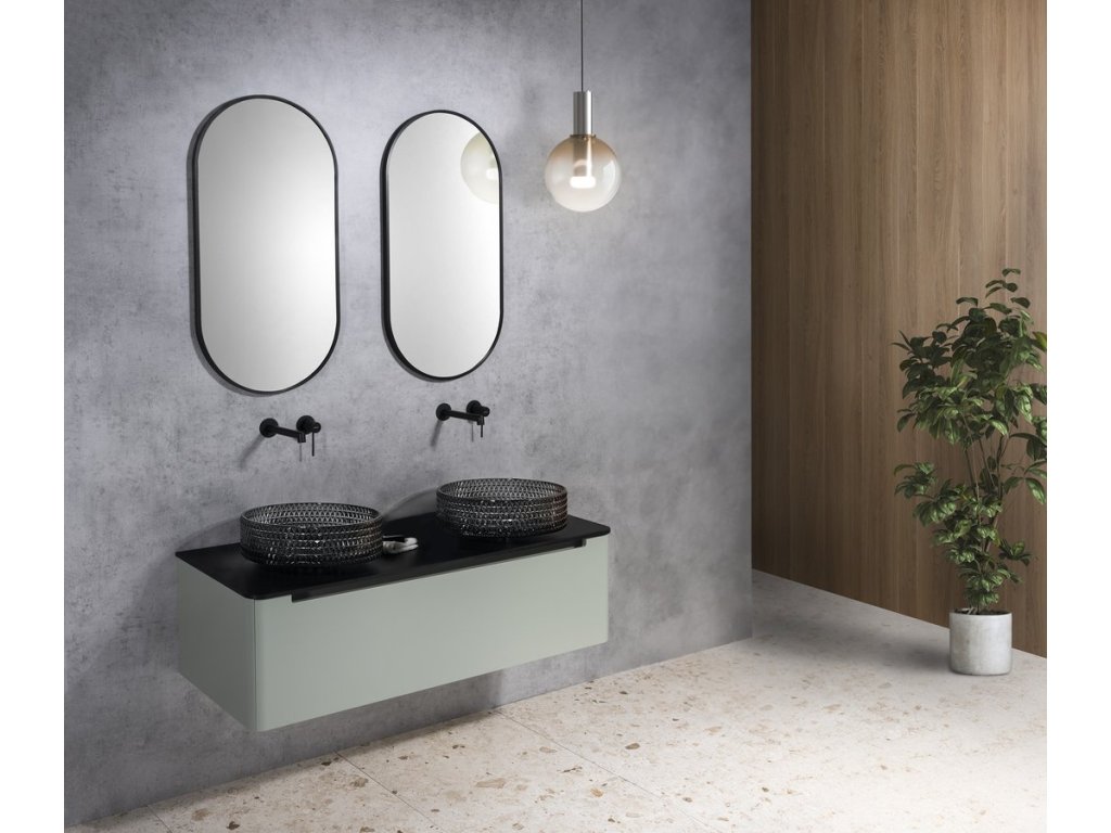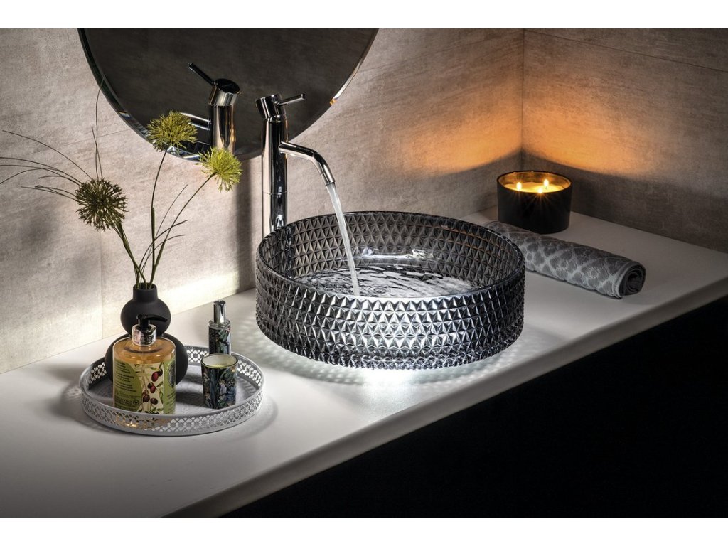 MARAGUA skleněné gravírované umyvadlo na desku Ø 39,5cm, černá