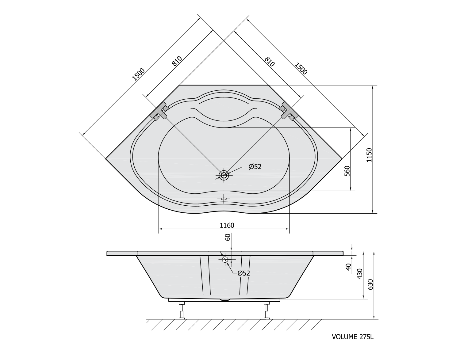 MAREA rohová vana 150x150x43cm, bílá