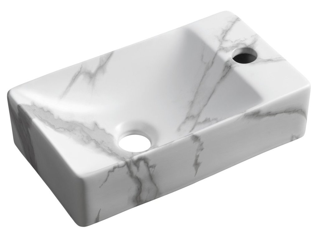 MARGITHA keramické umývátko 38x22cm, otvor pro baterii vpravo, carrara