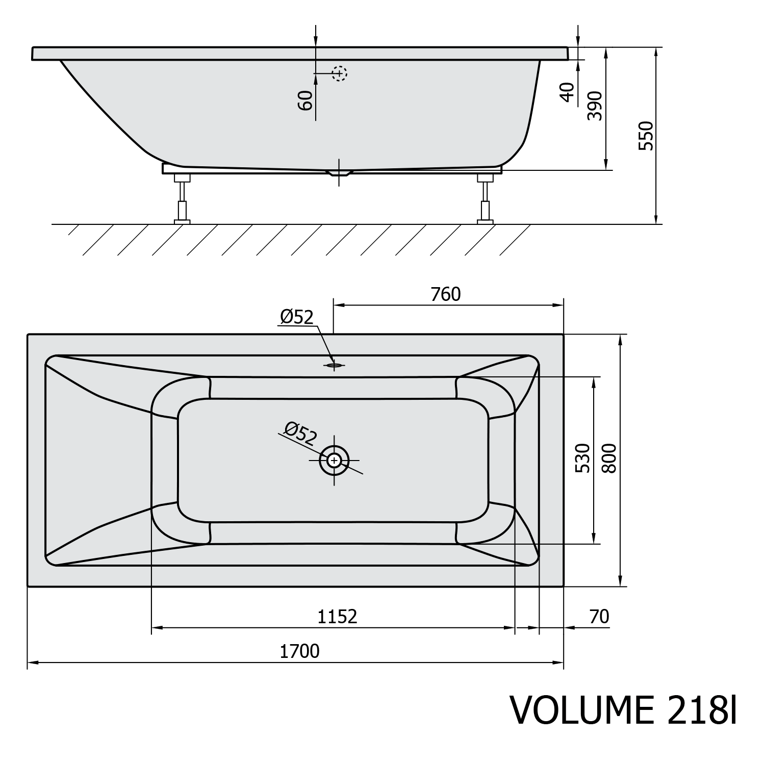 MIMOA obdélníková vana 170x80x39cm, ivory