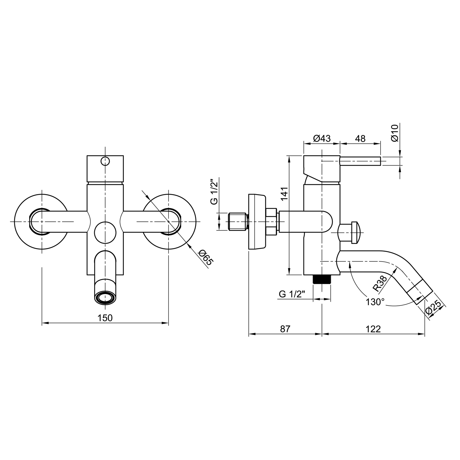 | Instalace: | Nástěnná 150 mm |
