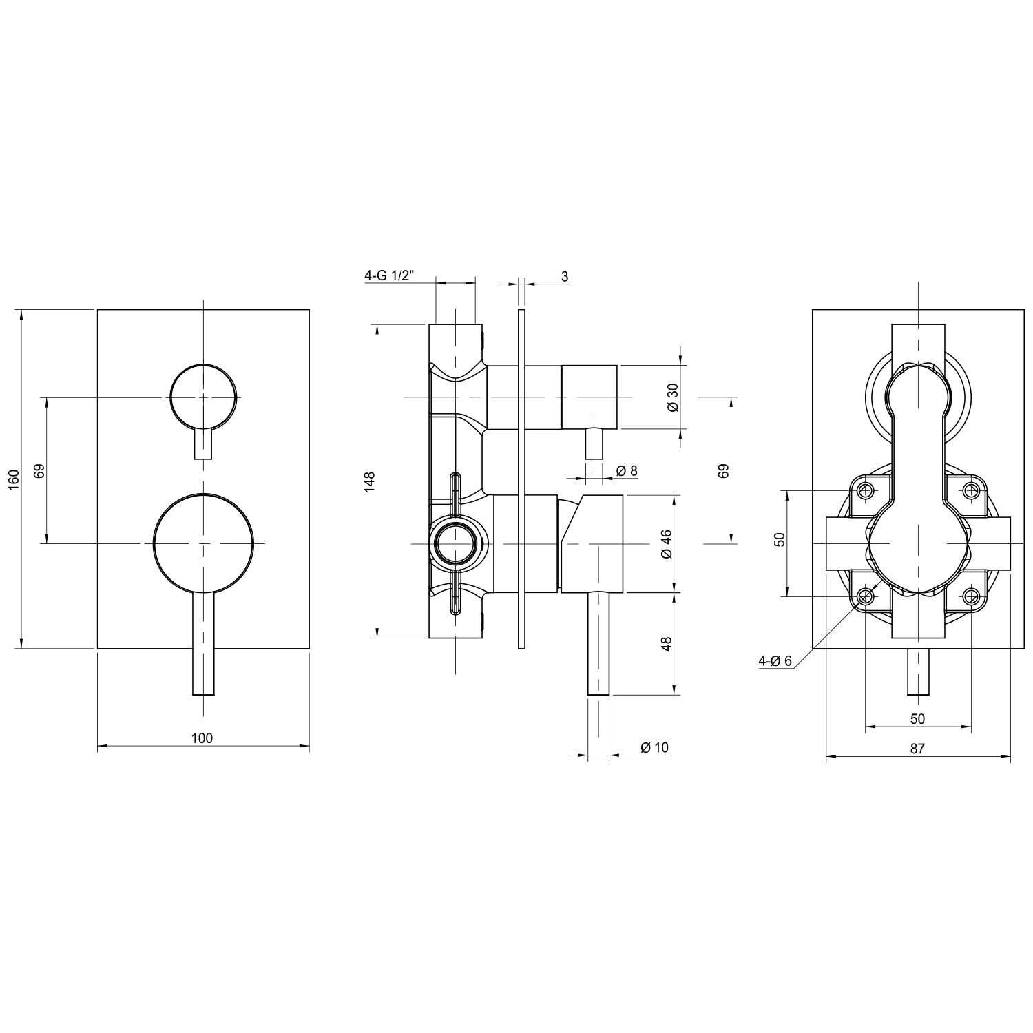 MINIMAL podomítková sprchová baterie, 2 výstupy, nerez mat