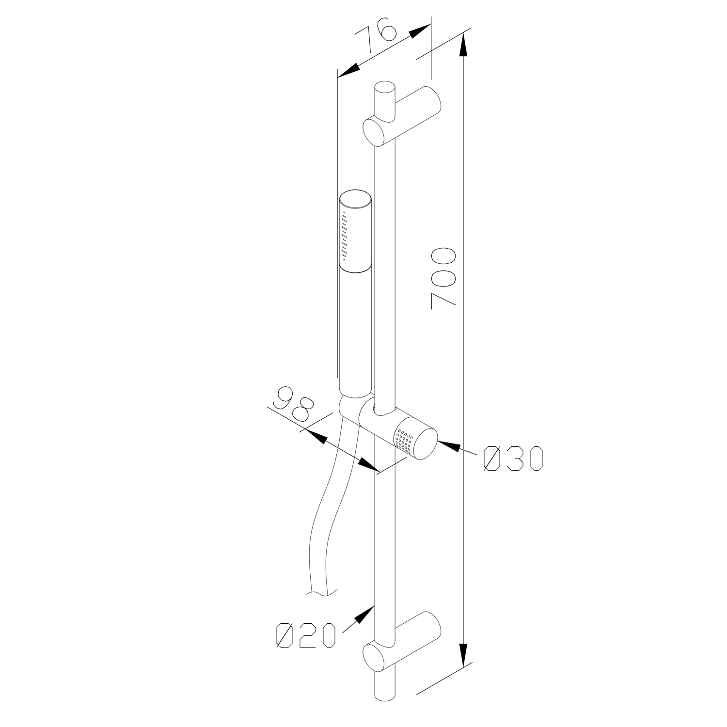 MINIMAL sprchová tyč, posuvný držák, kulatá, 700mm, nerez