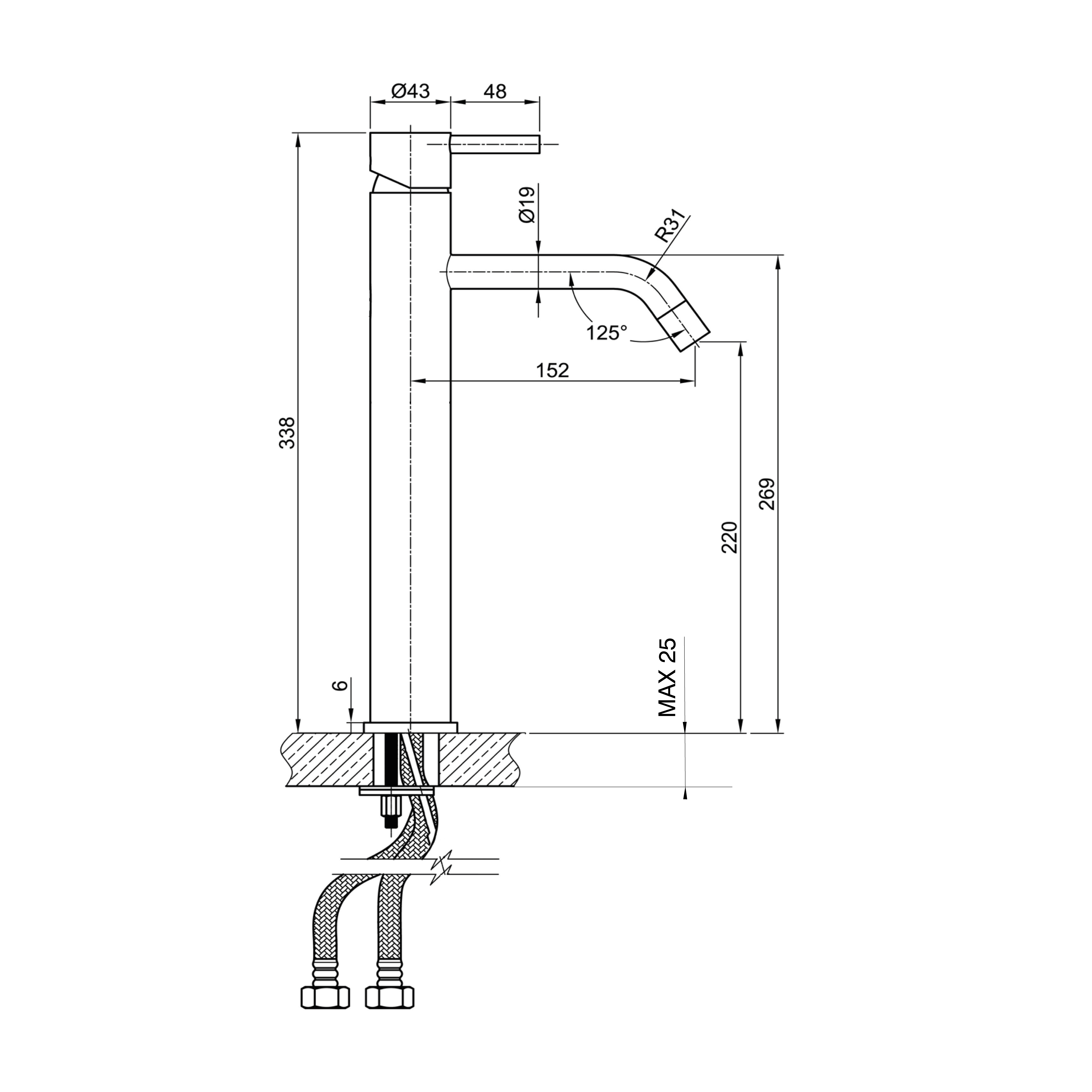 MINIMAL stojánková umyvadlová baterie vysoká, nerez mat