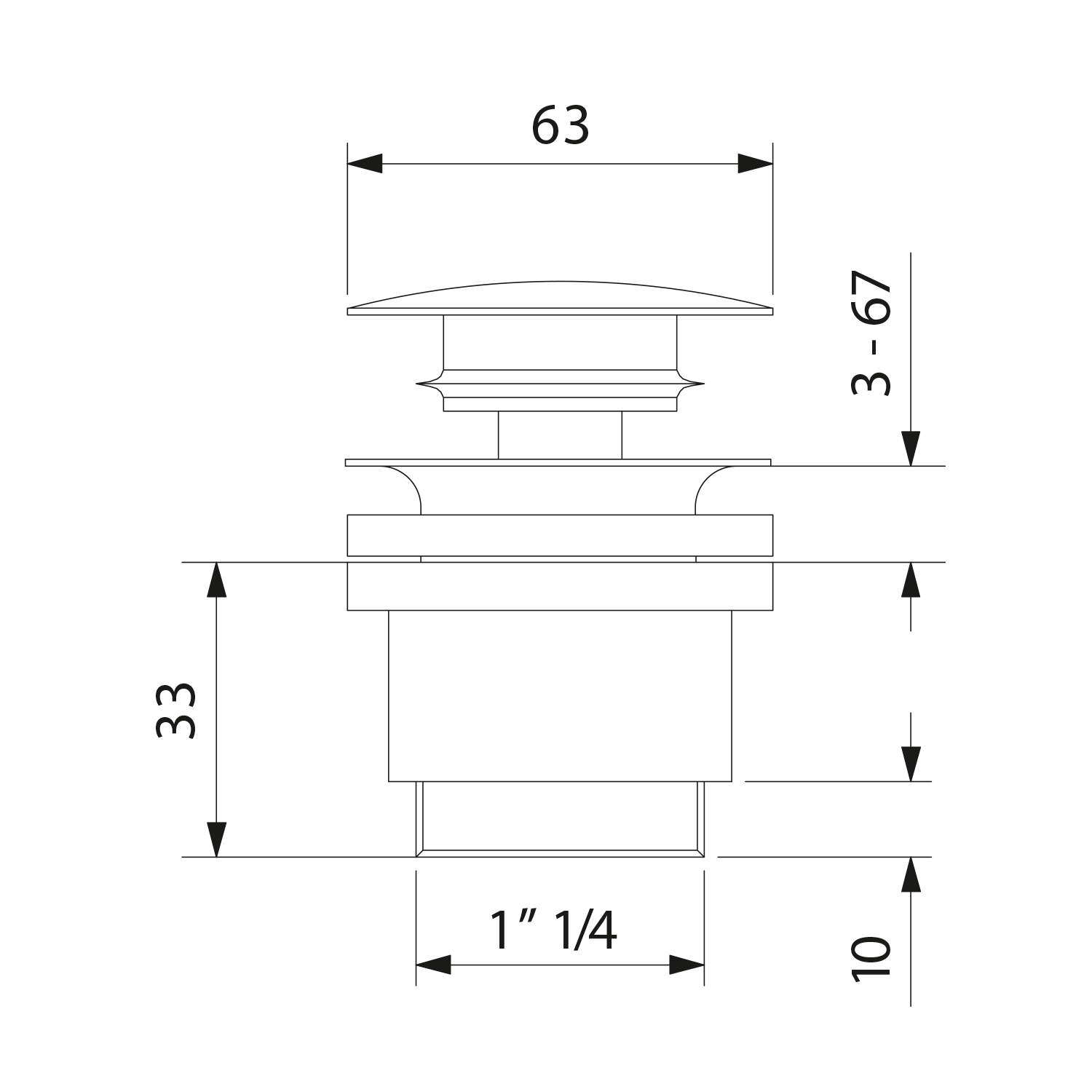 MINIMAL umyvadlová výpust 5/4“, click-clack, velká krytka, nerez mat