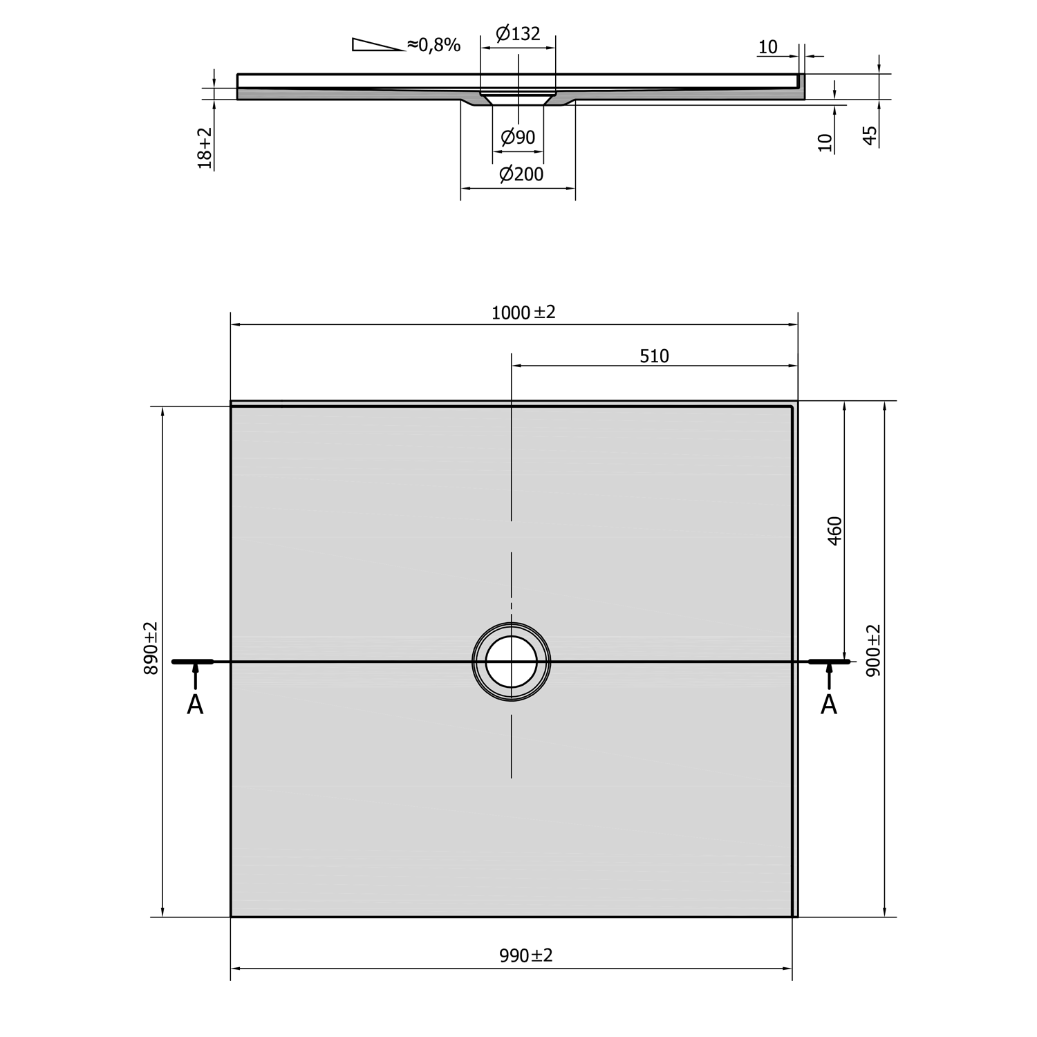 - Drážky na spodní straně umožňují vaničku nalepit přímo na podlahu. Díky nízké výšce 18 mm lze dlažbu nalepit do stejné roviny s vaničkou.
