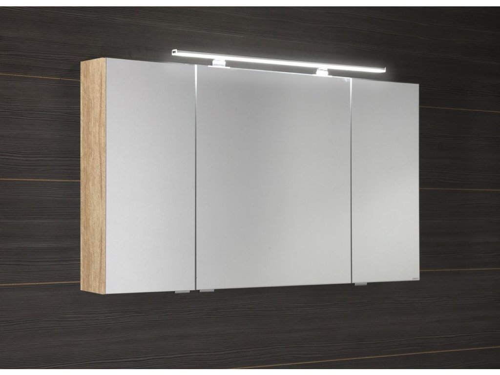 MIRRÓ galerka s LED osvětlením, 3x dvířka, 120x70x16cm, dub alabama