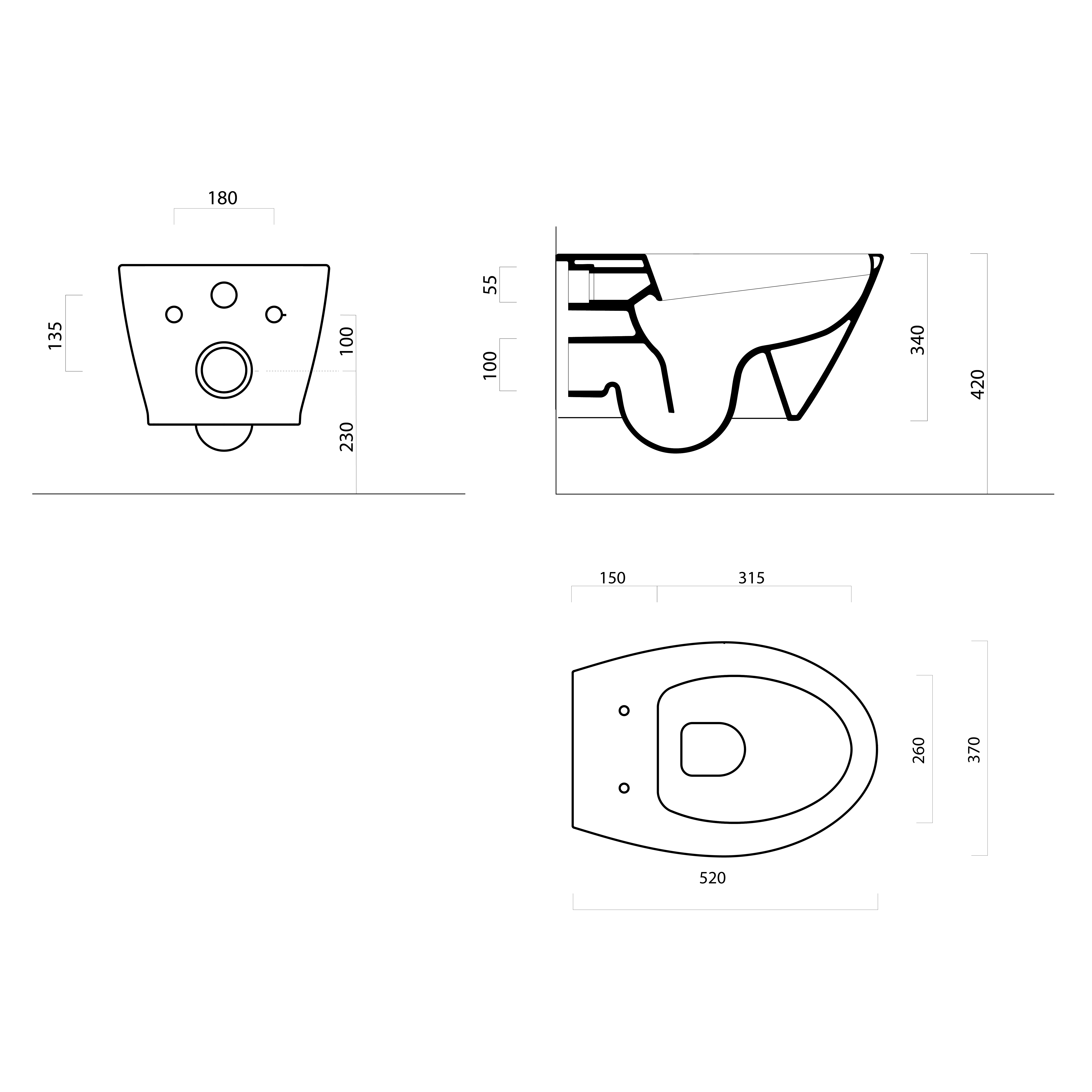MODO závěsná WC mísa, Swirlflush, 37x52cm, černá dual-mat