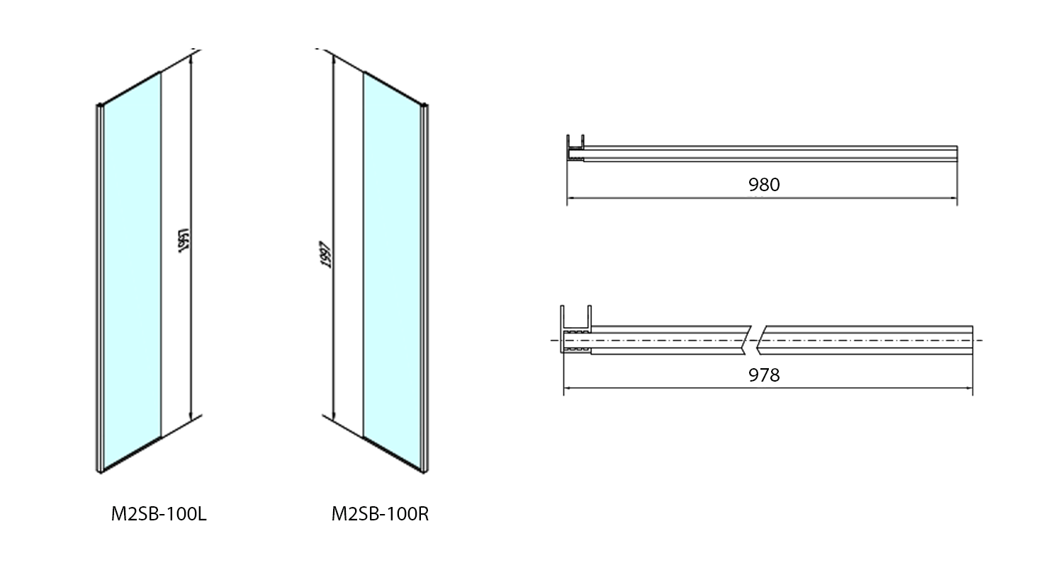 MODULAR SHOWER pevný panel k instalaci na stěnu modulu MS2, 1000 mm, pravý