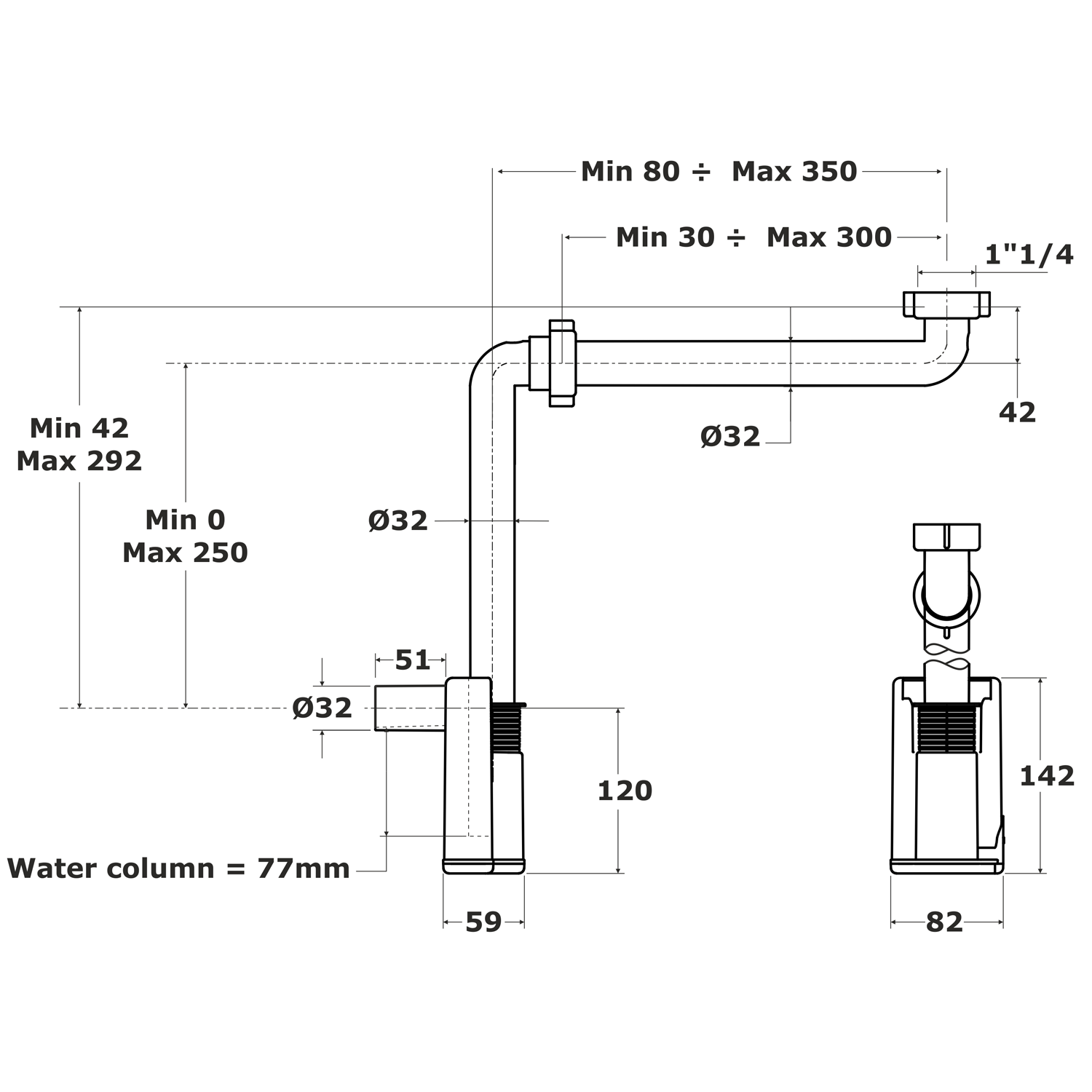 MURALES nábytkový sifon šetřící místo, 5/4", odpad 32mm, bílá