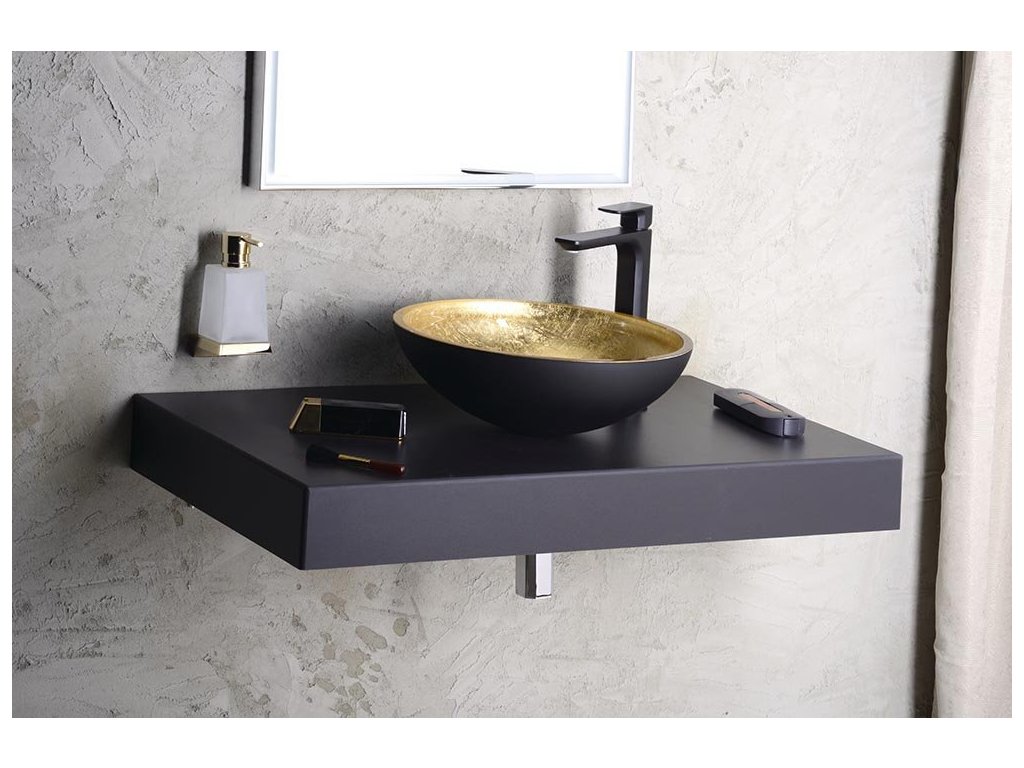 MURANO BLACK-GOLD skleněné umyvadlo na desku, průměr 40cm, černá/zlatá