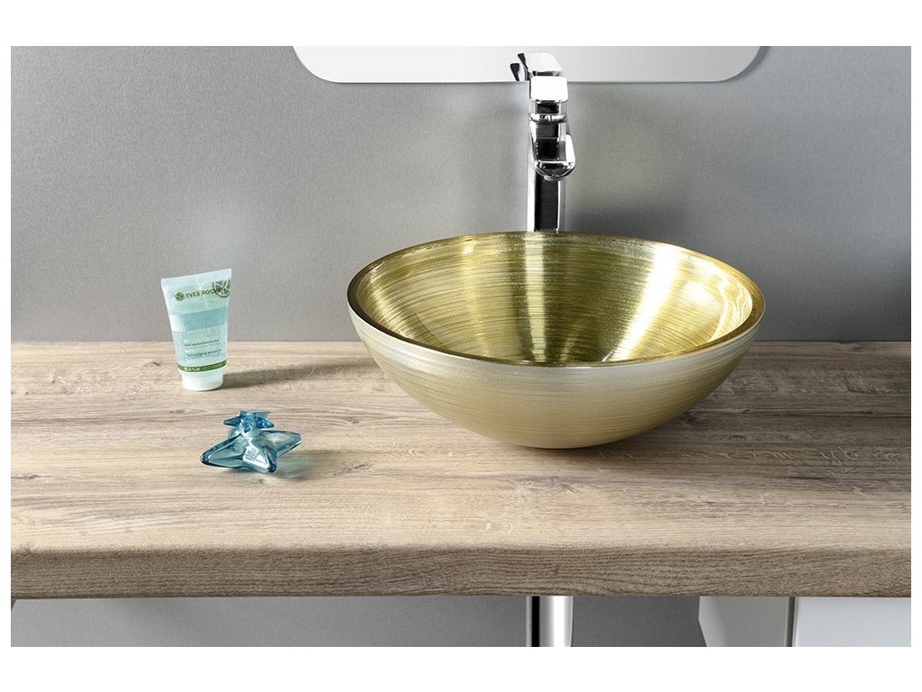 MURANO SOFT BROWN skleněné umyvadlo na desku, průměr 40cm, béžovozlatá