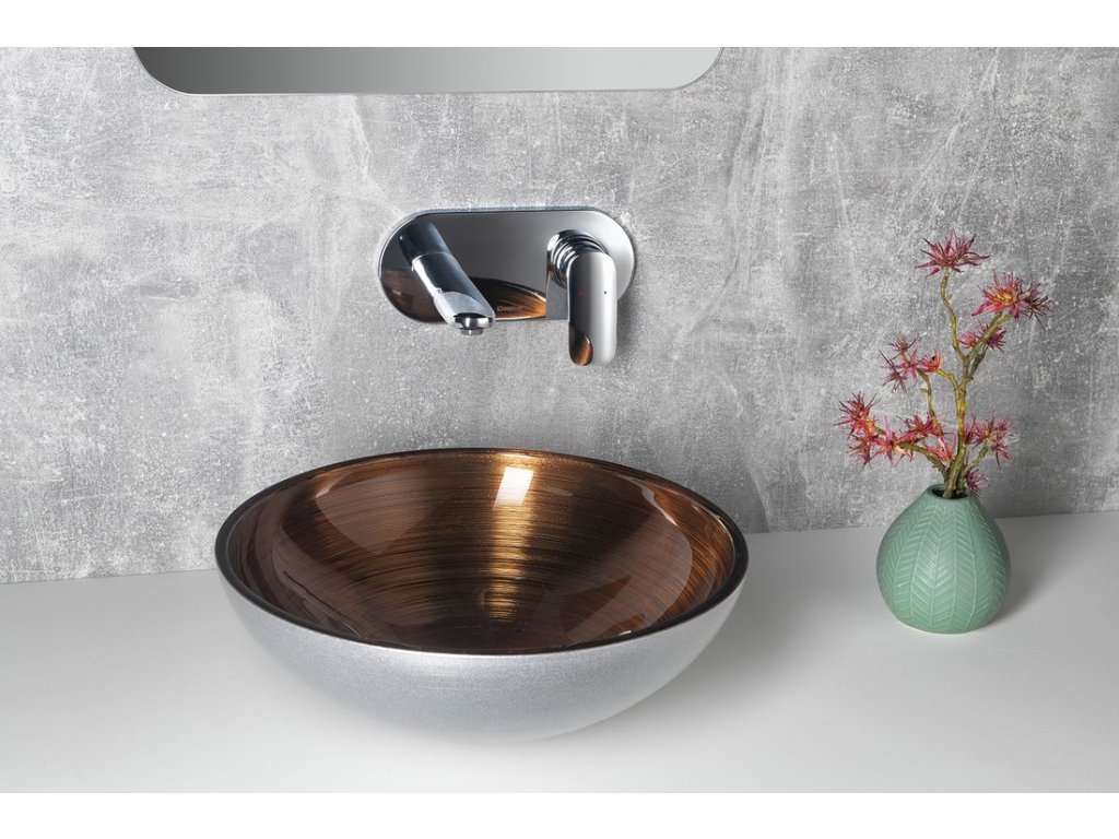 MURANO WENGE skleněné umyvadlo na desku, průměr 40cm, měděná/stříbrná