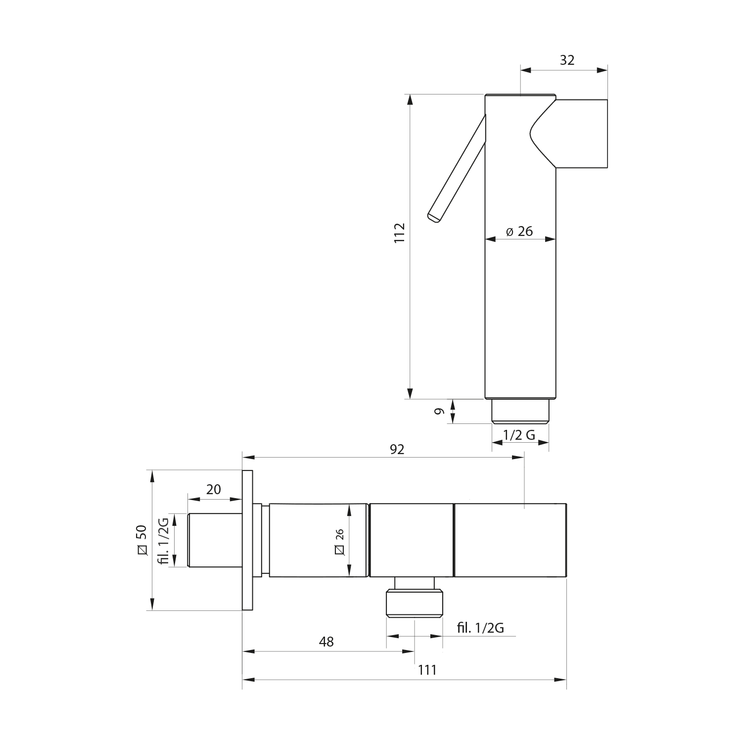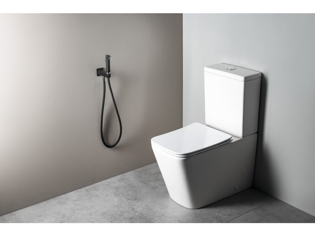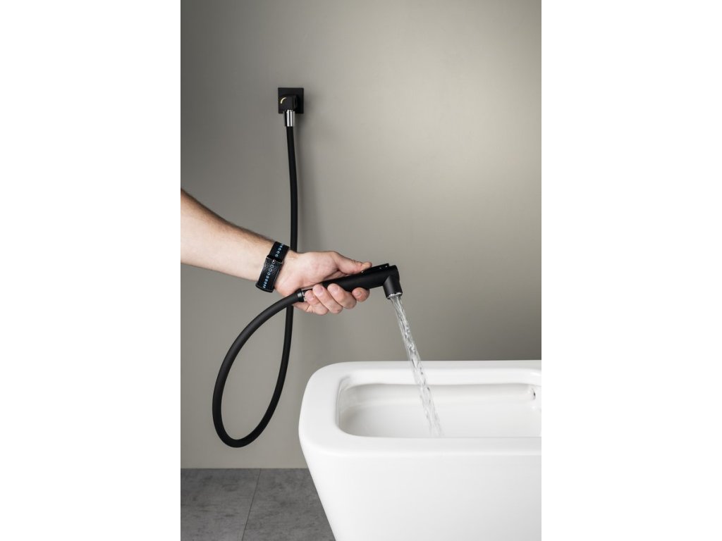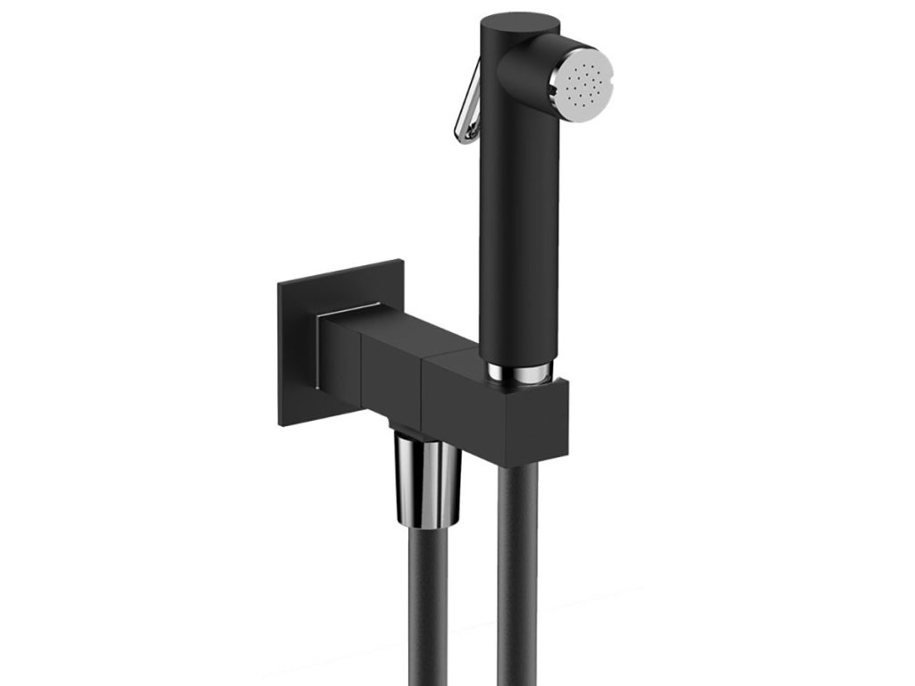 Nástěnný ventil s ruční bidetovou sprškou a bezpečnostní pojistkou,hranatý,černá mat
