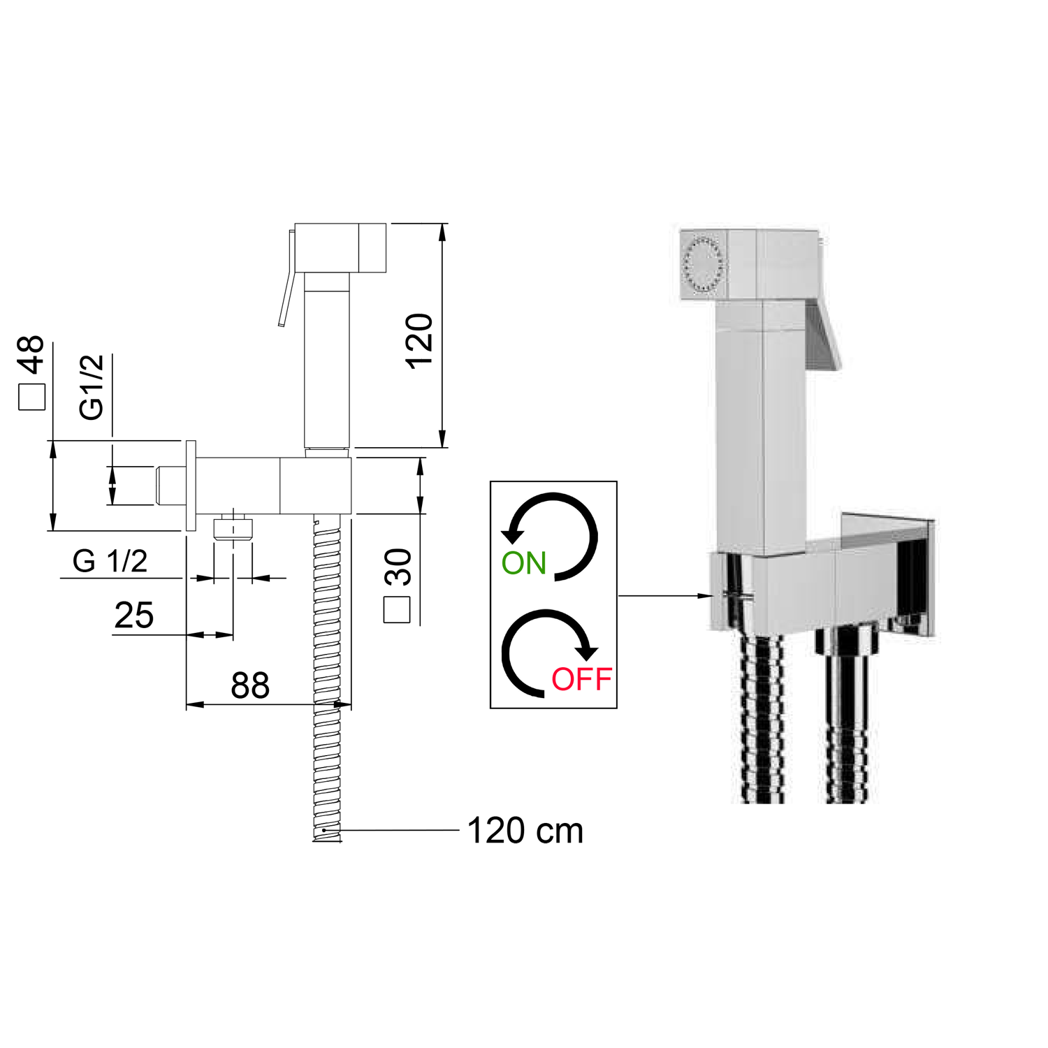 Nástěnný ventil s ruční bidetovou sprškou a bezpečnostní pojistkou,hranatý,chrom