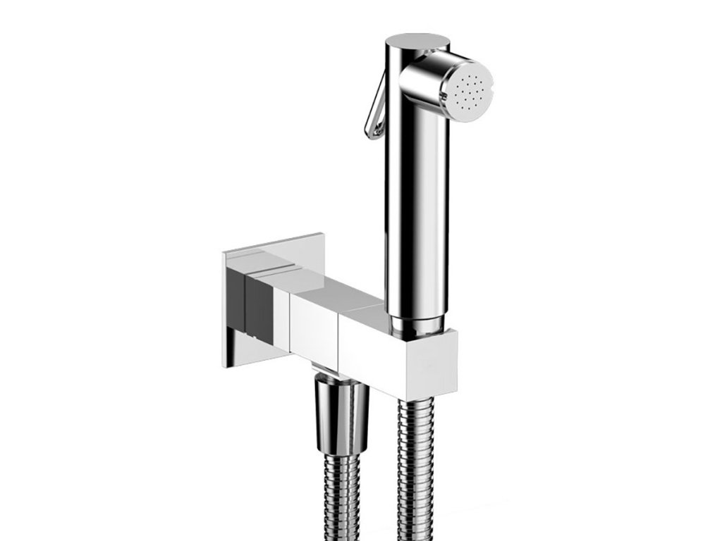 Nástěnný ventil s ruční bidetovou sprškou a bezpečnostní pojistkou,hranatý,chrom