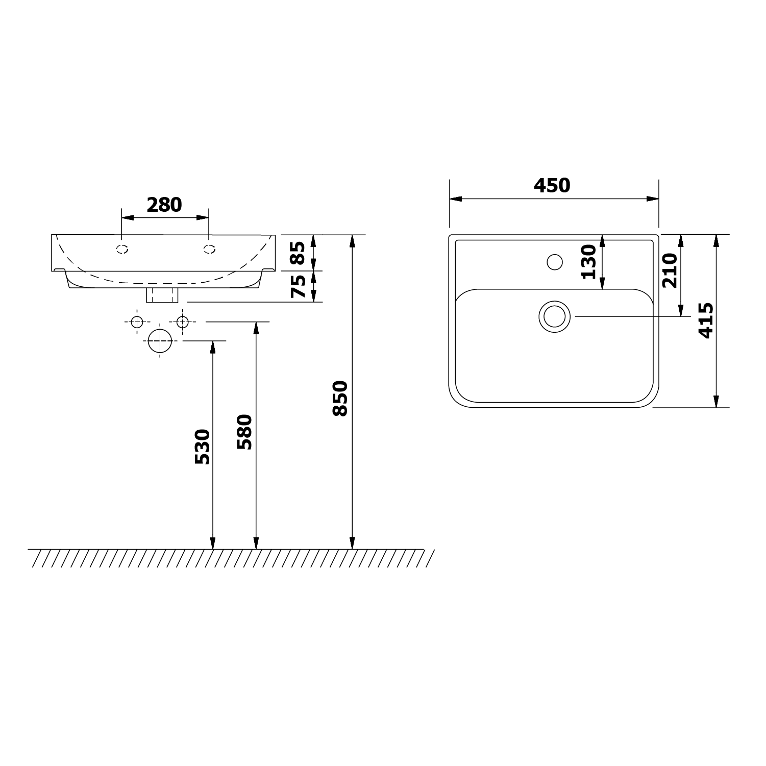 NEON keramické umyvadlo 45x41,5cm, bílá