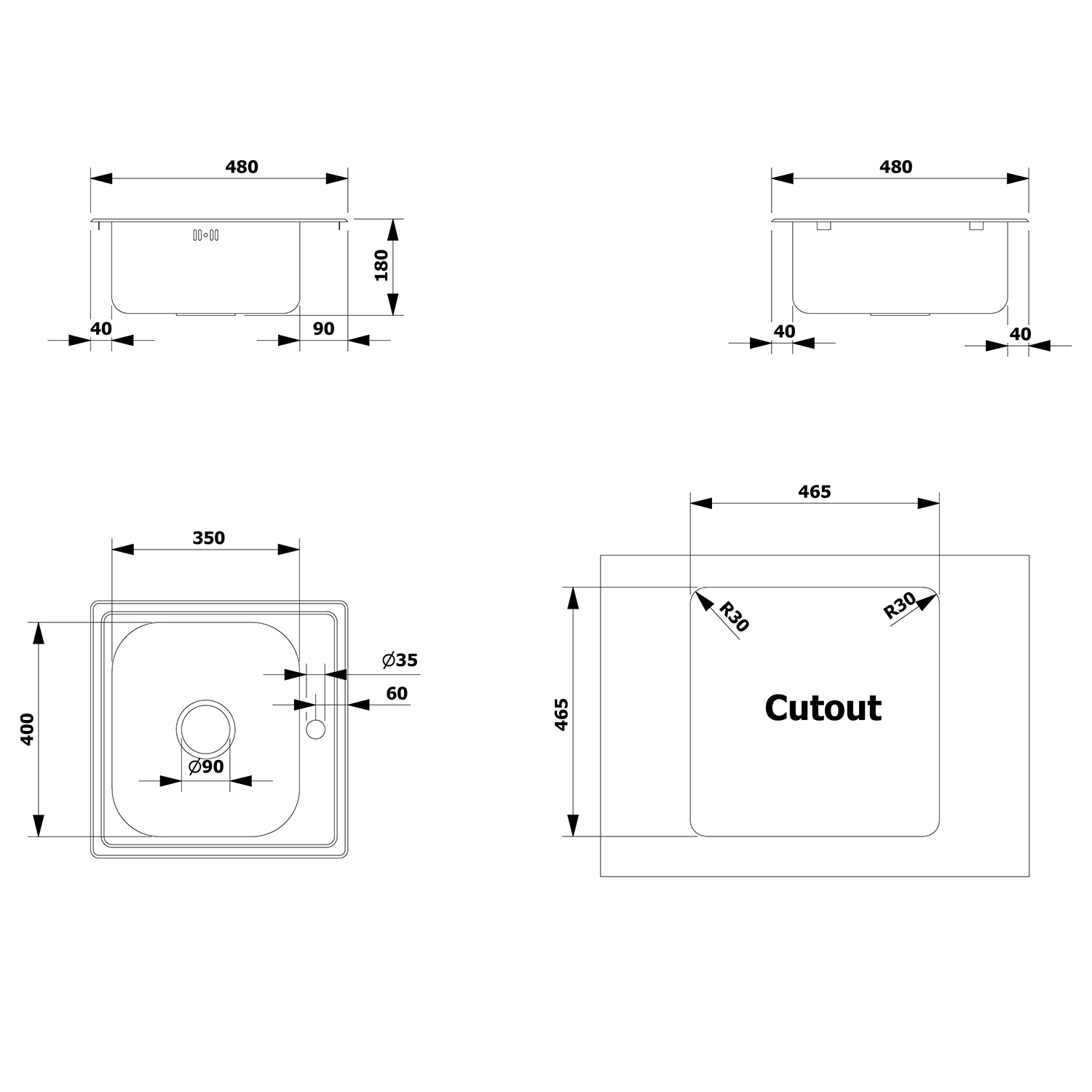 Nerezový vestavný dřez 48x18x48cm